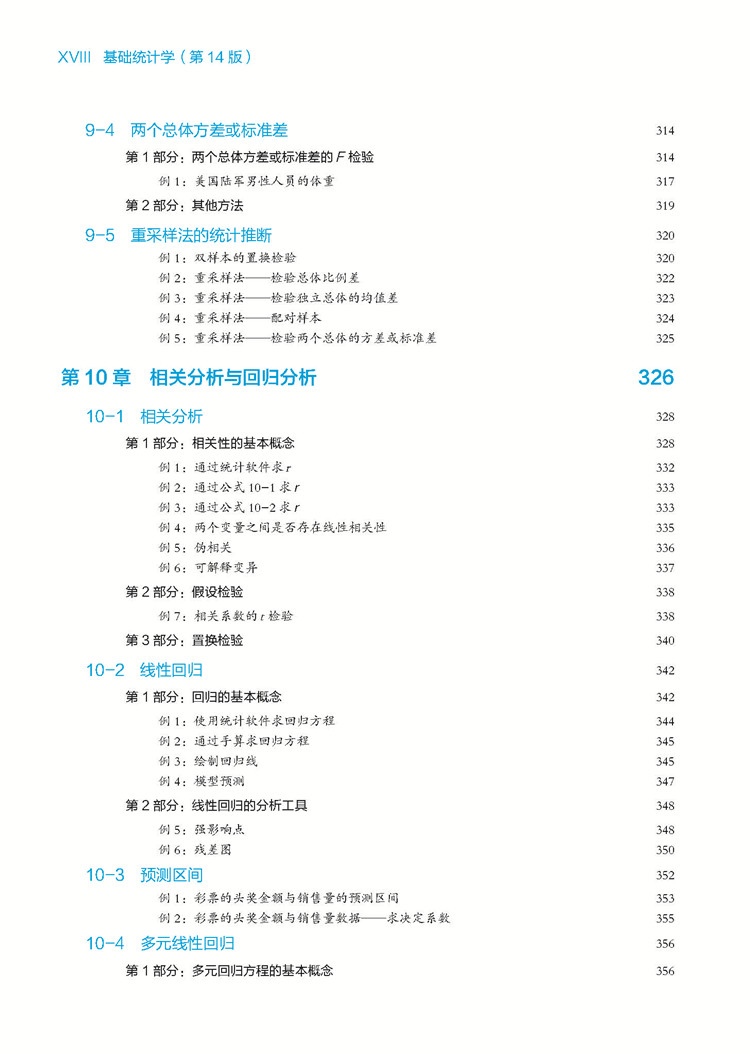 础知识。2_4 节包括散点图、相关性和回归分析的基本概念,但不涉及公式。第10 章则对相关性和回归分析进行了深入探讨。
