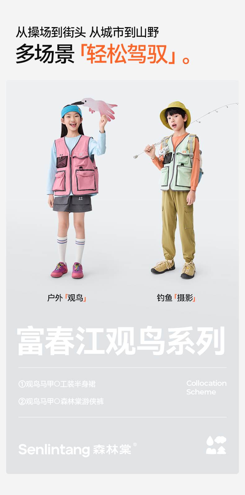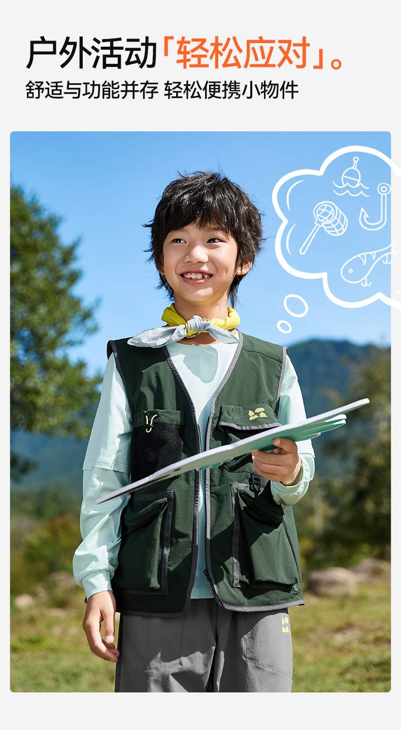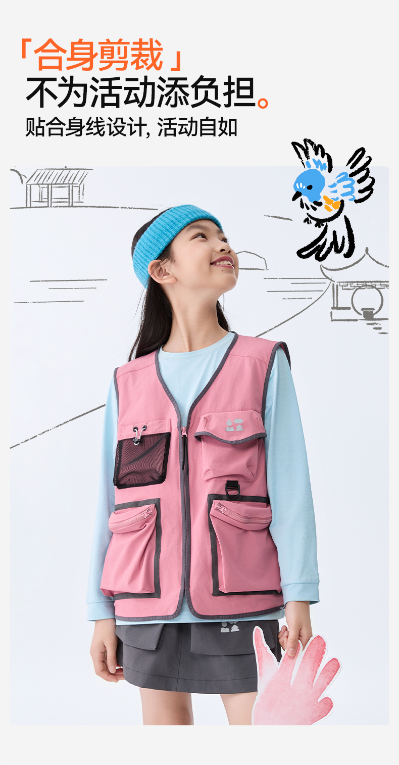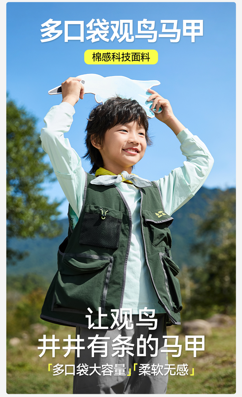【观鸟马甲】森林棠25春款儿童多口袋设计户外棉感观鸟马甲20712401