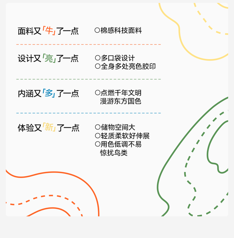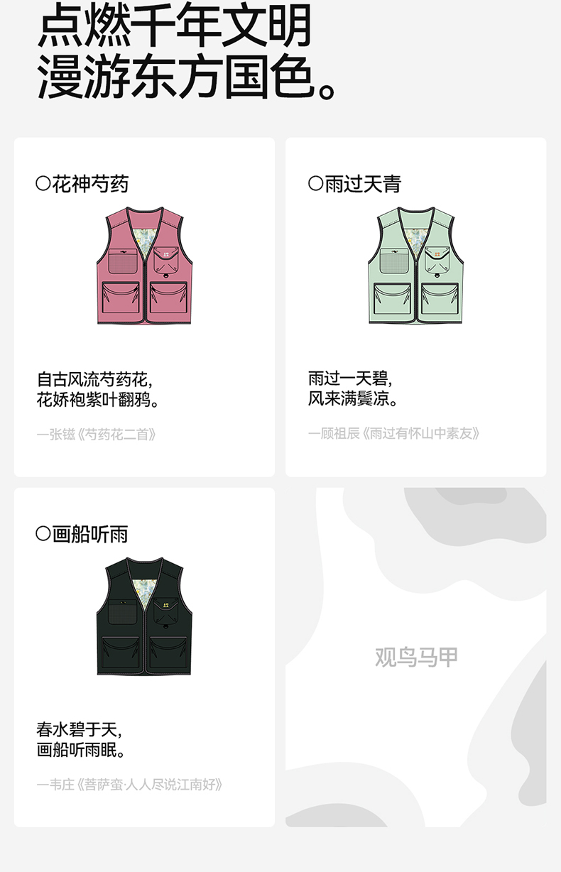 推荐理由:以观鸟场景为设计初心,整个色系的选择相对更适合融入自然,且多口袋的设计风格,满足了户外观鸟的使用需求,储物空间非常强悍。