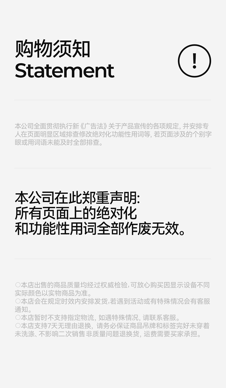四、退换货及售后政策:非质量问题不影响二次销售的商品支持七天无理由退换货,买家承担运费自行寄回;收到商品有任何质量问题请联系我们处理售后