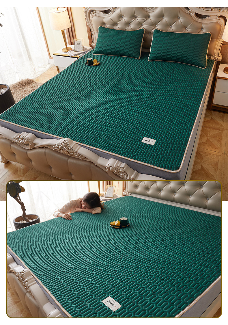 【黑科技凉感丝!纯色乳胶凉席三件套】冰感舒适,乳胶芯层,自然呼吸,舒适透气,细腻凉爽,加厚空调软凉席子冰丝凉感席可水洗粉丝专属
