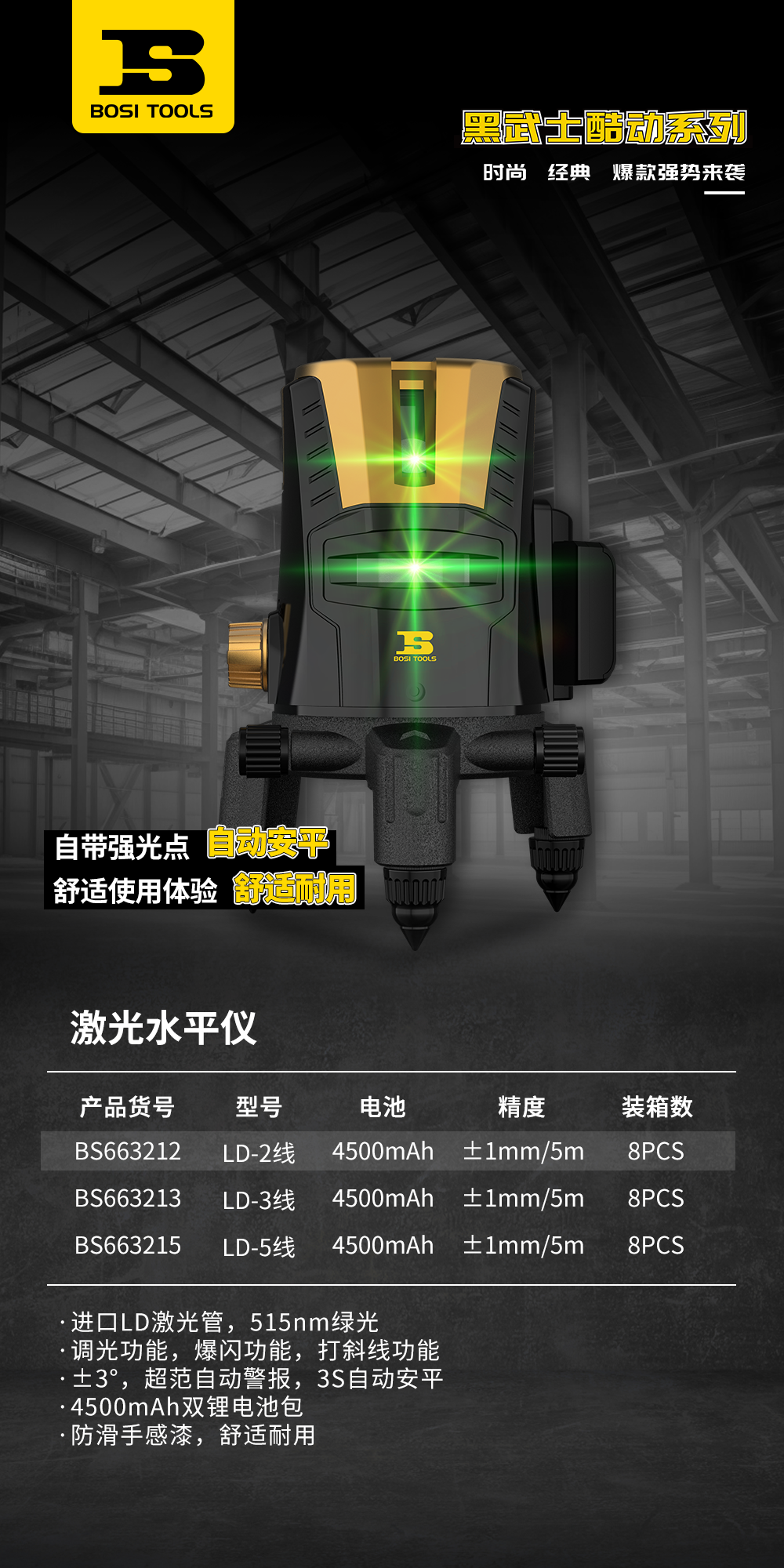 波斯 激光水平仪 (黑武士) LD-2线--T BS663212