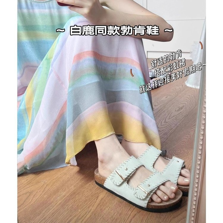 【明星白鹿同款厚底勃肯拖鞋】厚底勃肯拖鞋女外穿高级感,优质柔软面料经典好看百搭,2025法式绝美凉拖鞋夏外穿时尚沙滩鞋女QQ