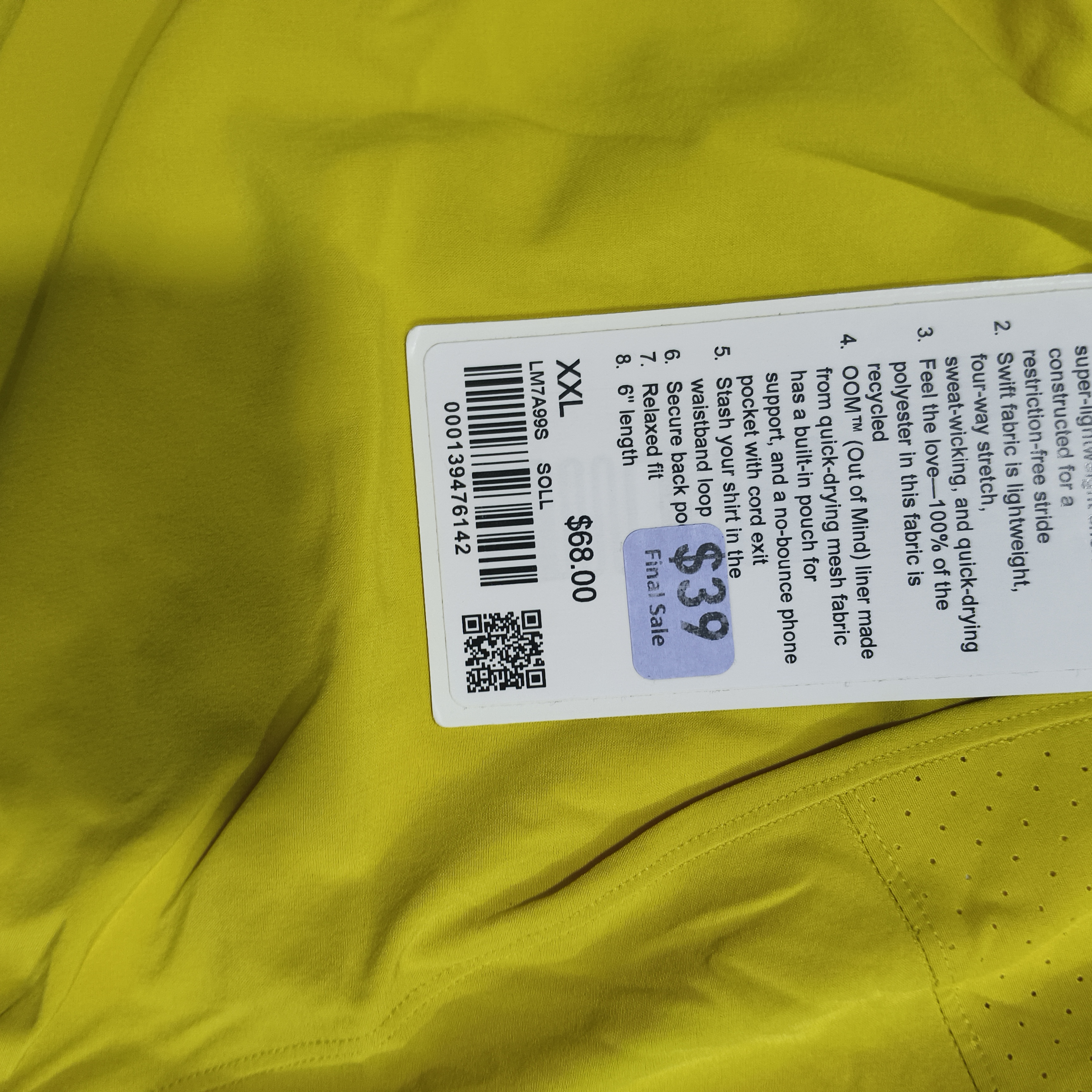 瑕疵 Lululemon/露露乐檬 男士夏季舒适休闲六英寸短裤