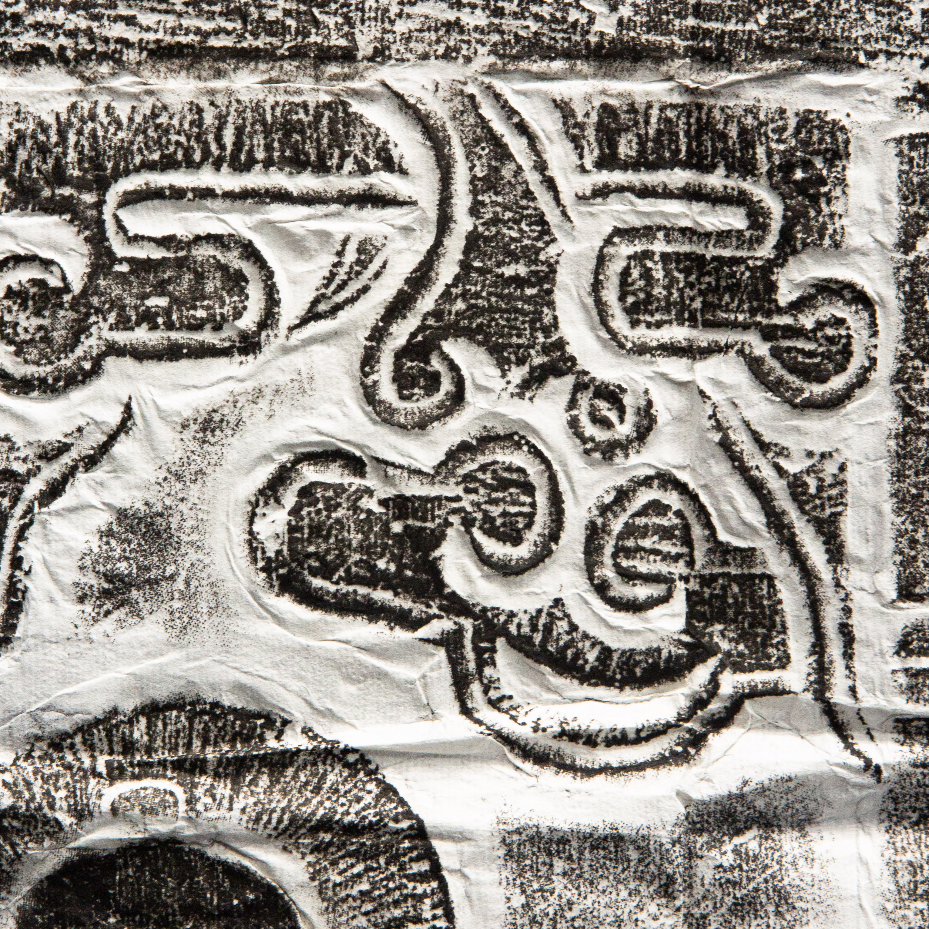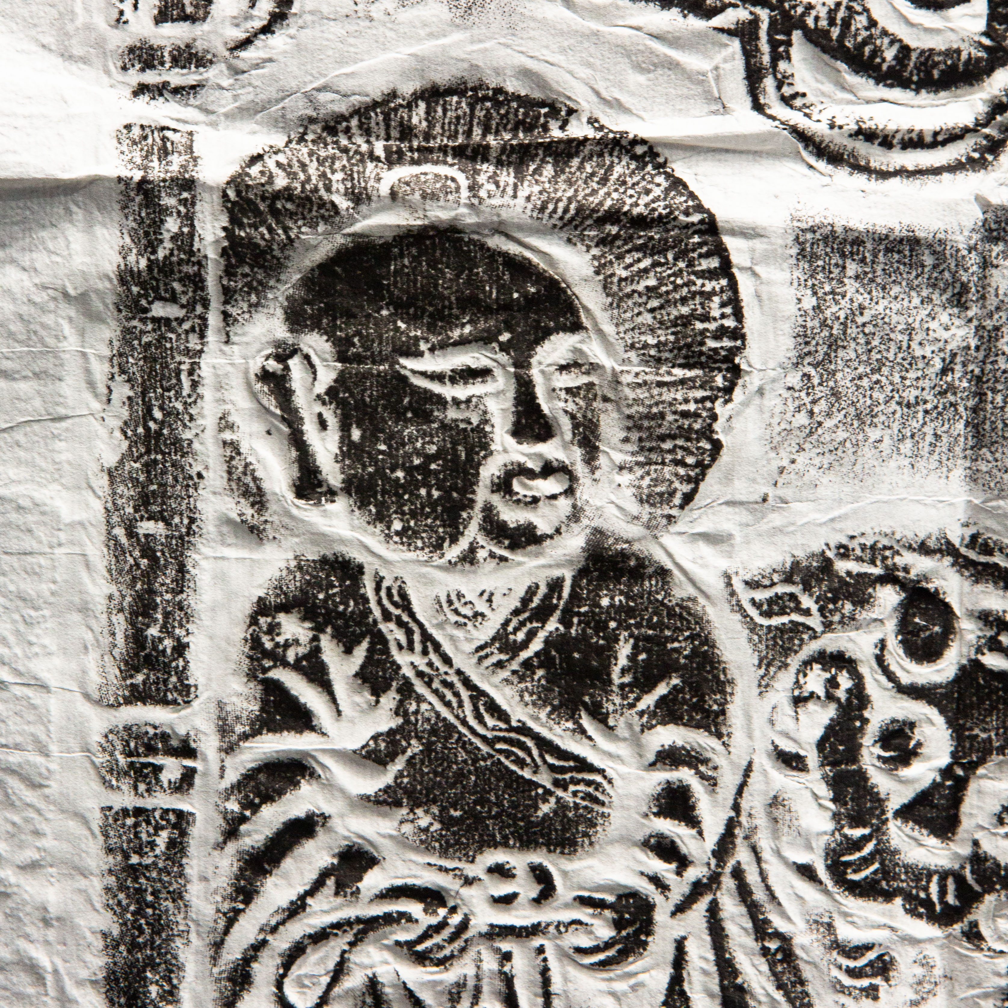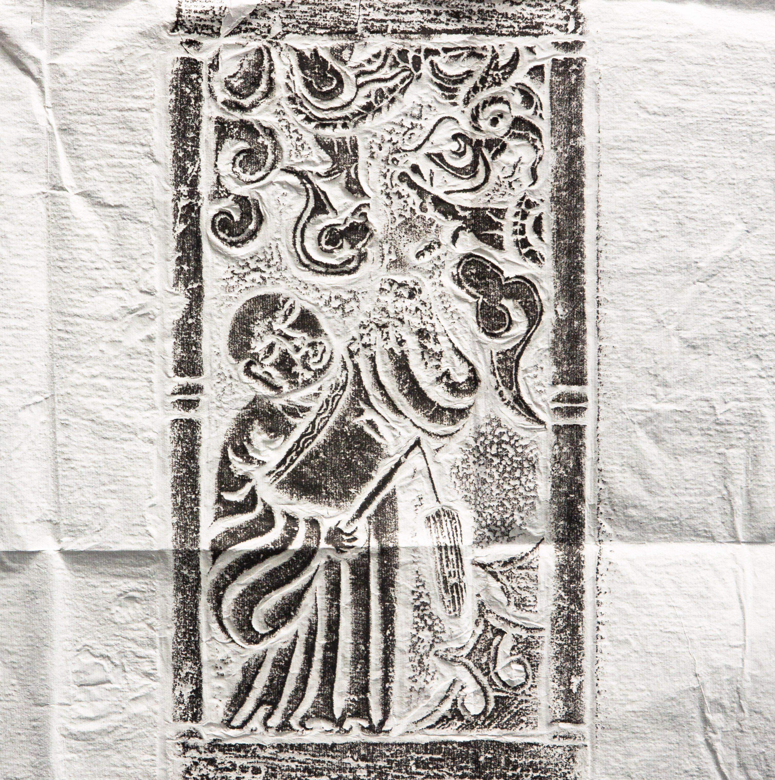 明代罗汉刻石拓片,原石原拓,刻画内容为降龙和伏虎两位罗汉,画面生动,气息古朴沉着,是难得之佳品。