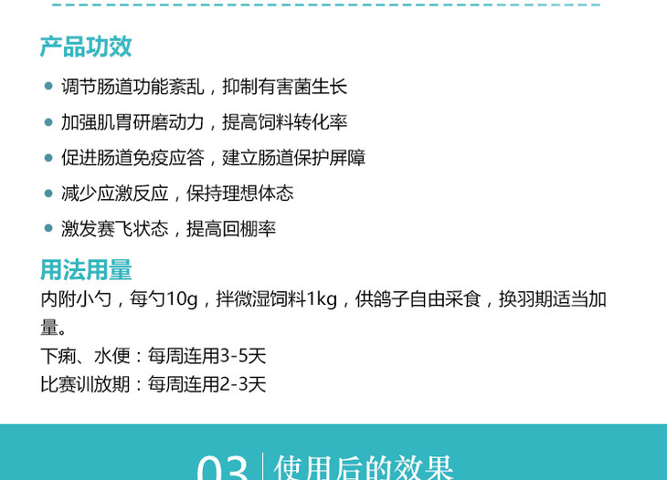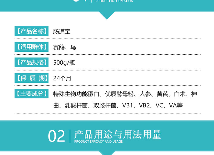 【肠道宝】500g,赛鸽肠道保健(心连心)