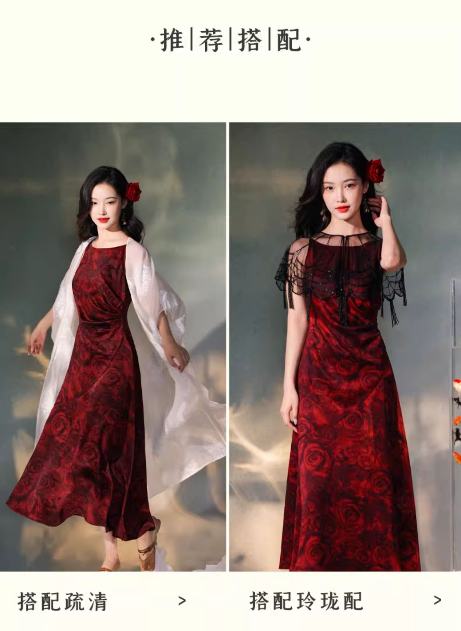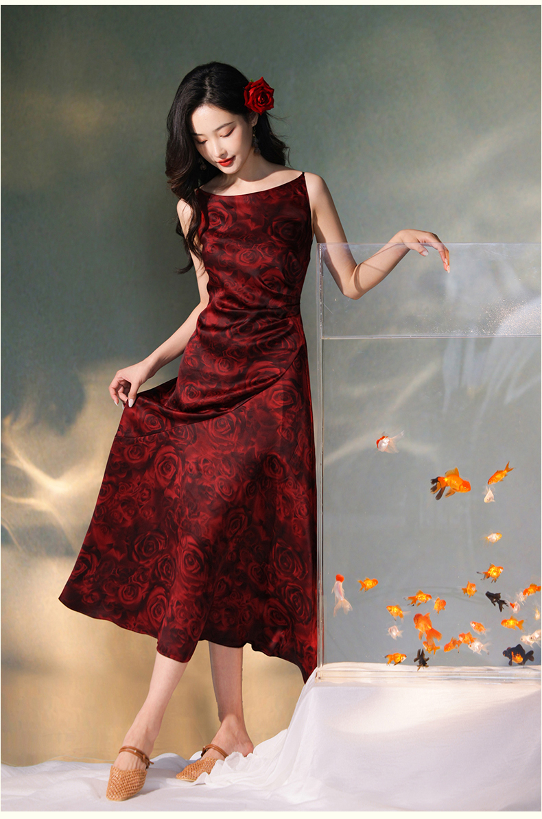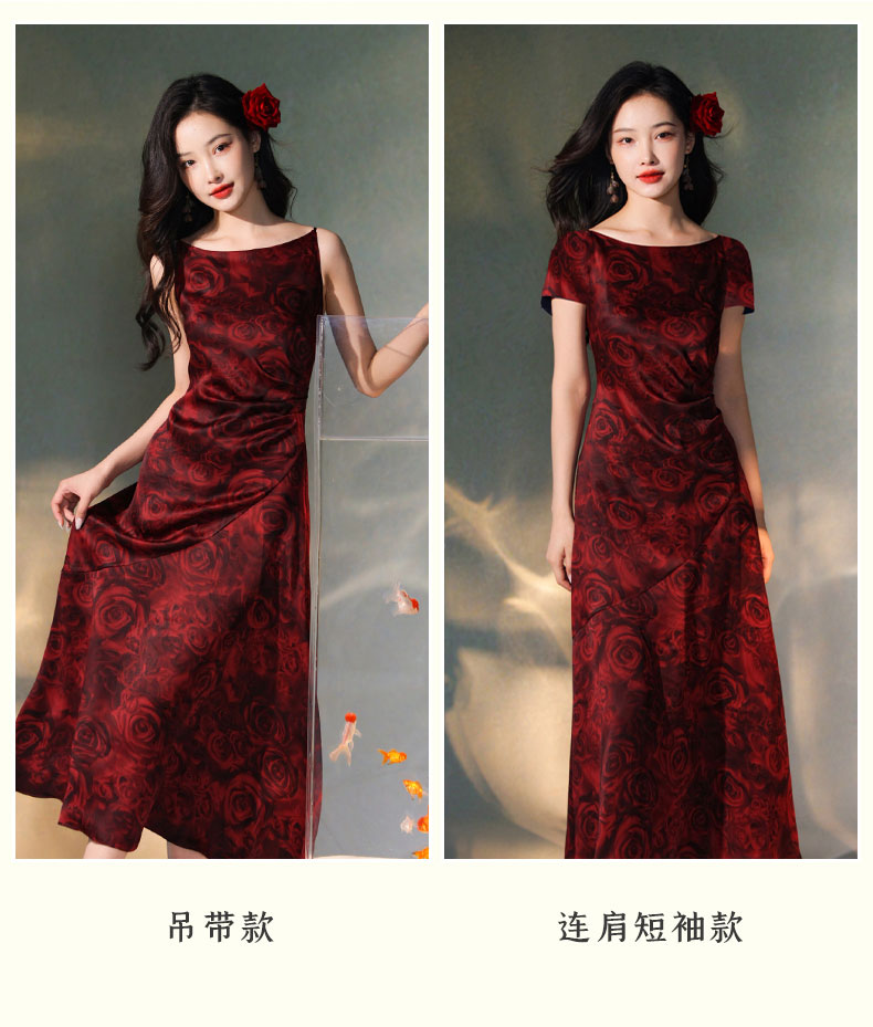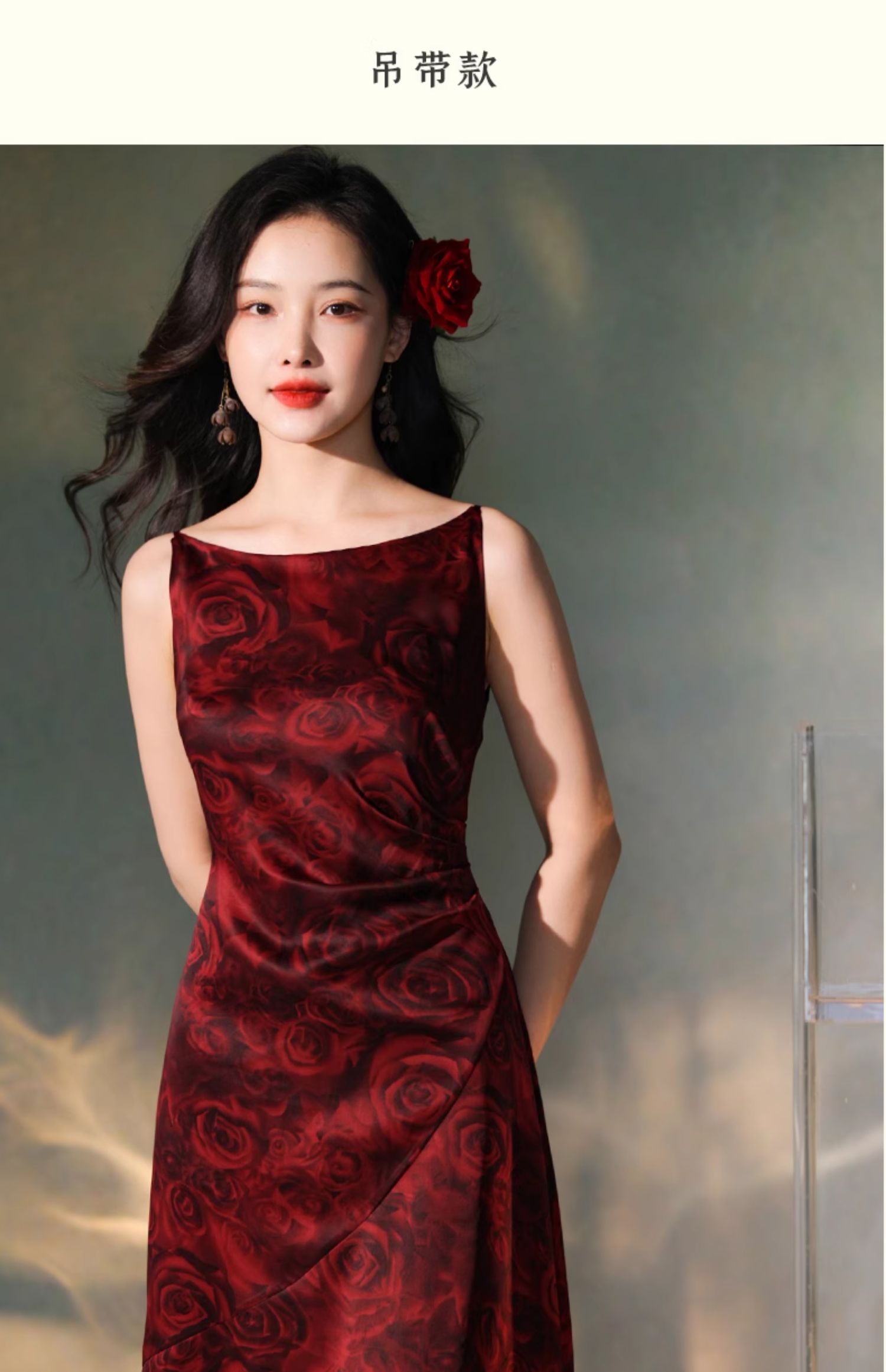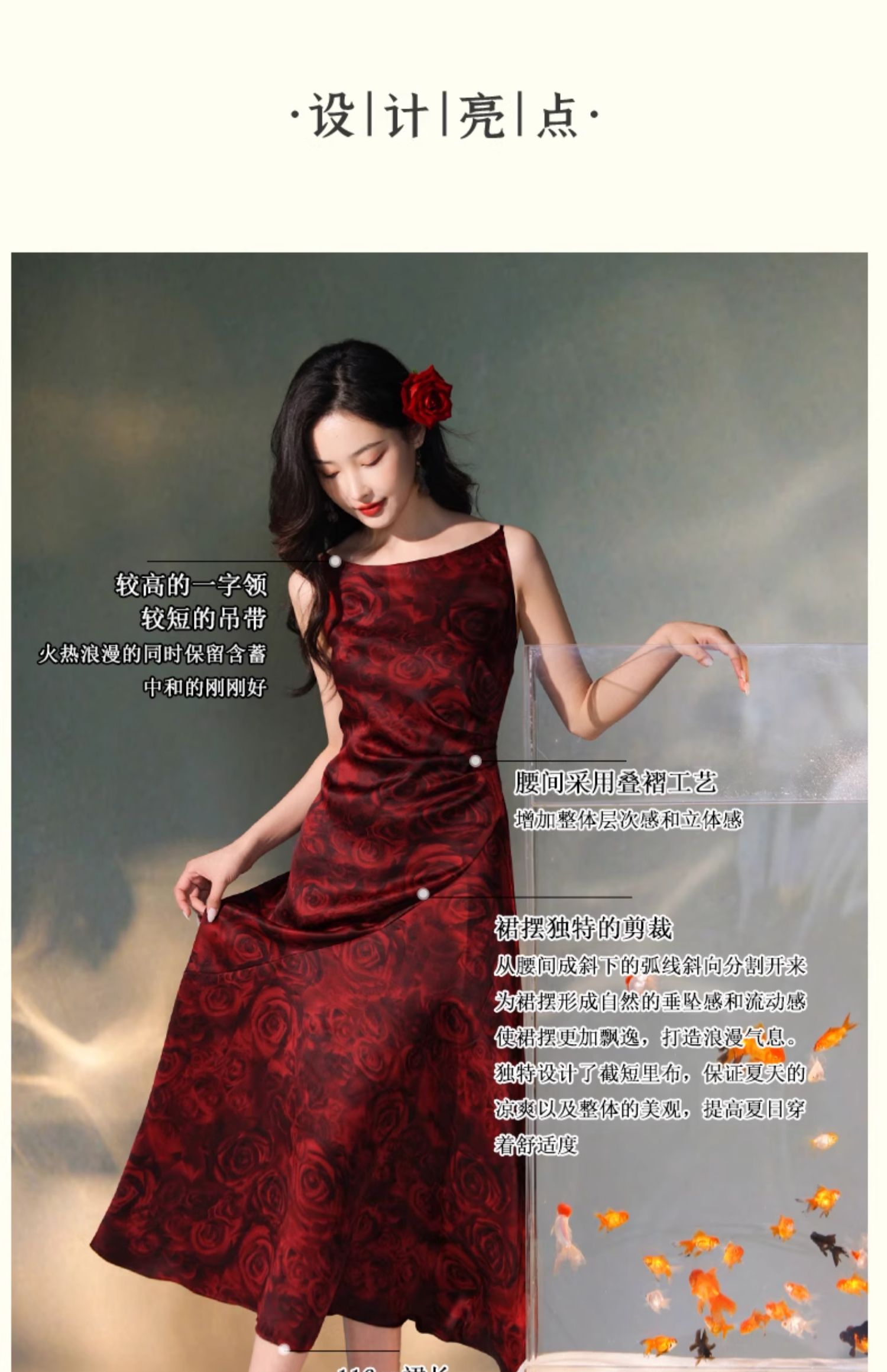 逸红颜姒燃2025夏新款3米用量前喷香云纱女人味新中式吊带连衣裙