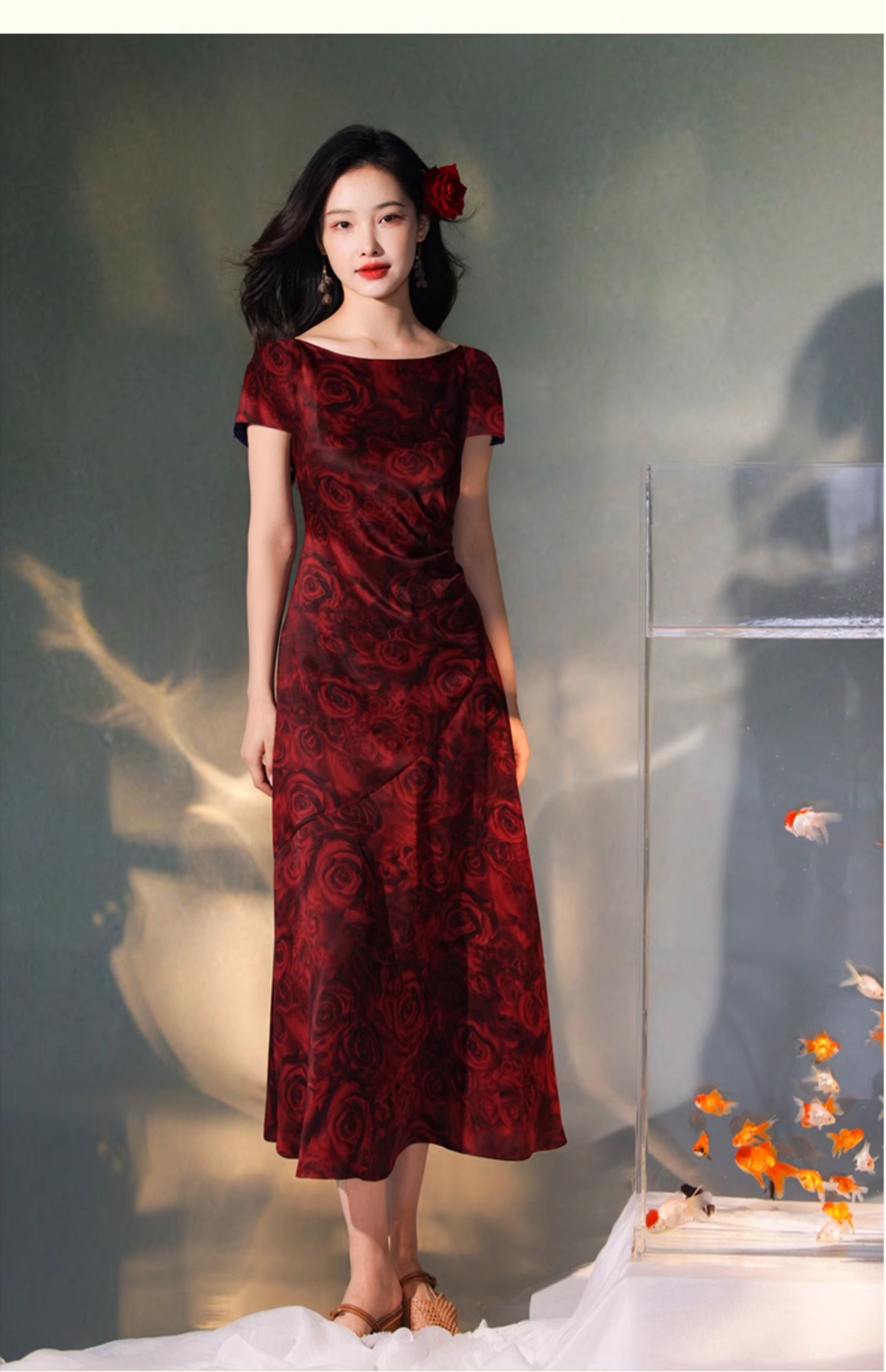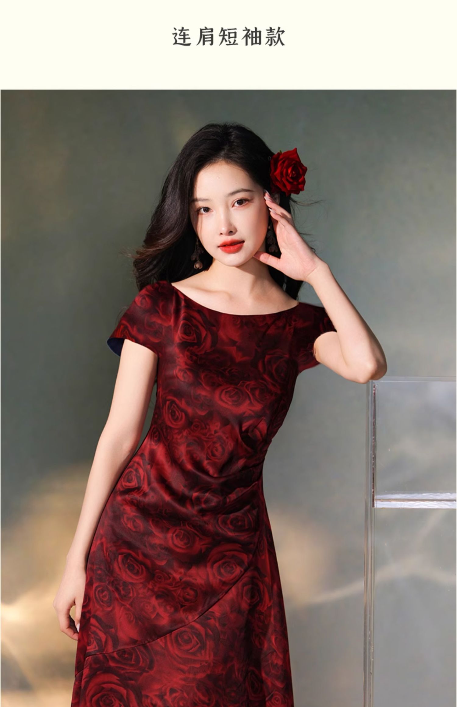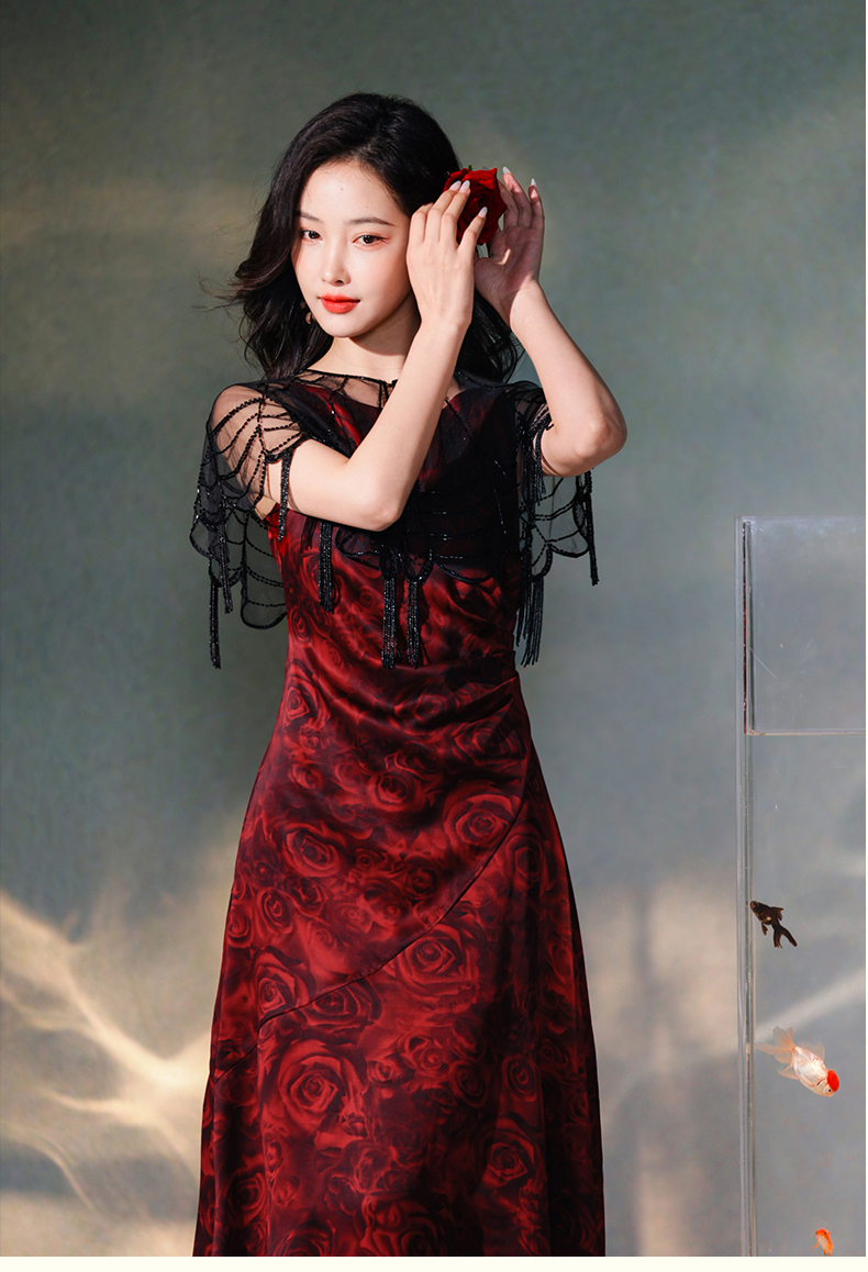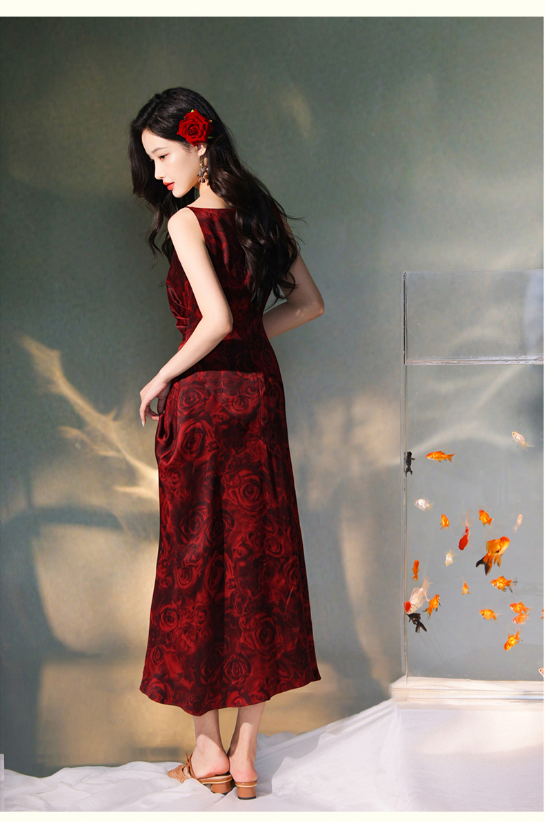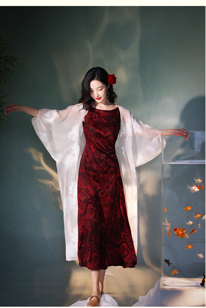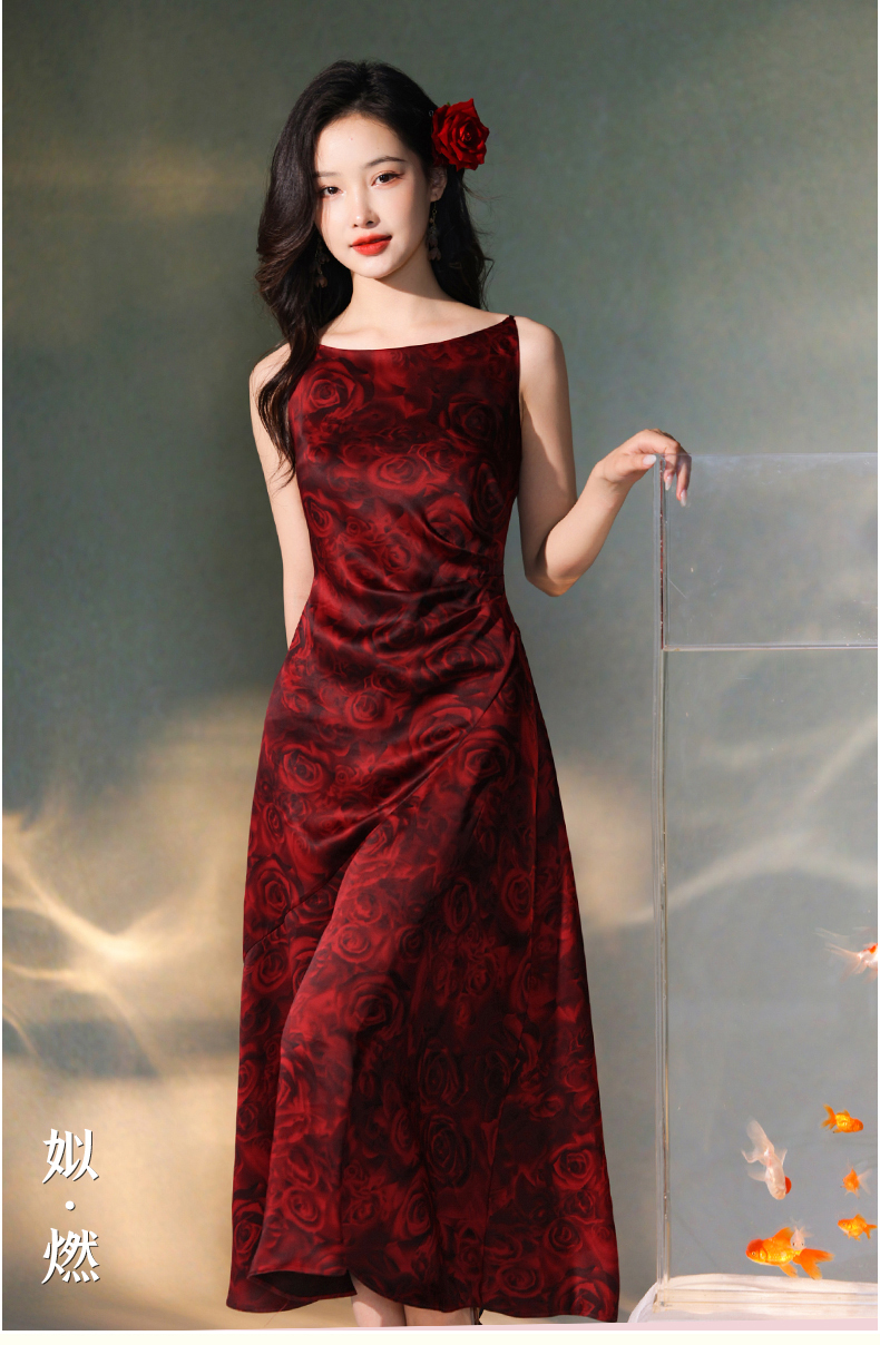 逸红颜姒燃2025夏新款3米用量前喷香云纱女人味新中式吊带连衣裙
