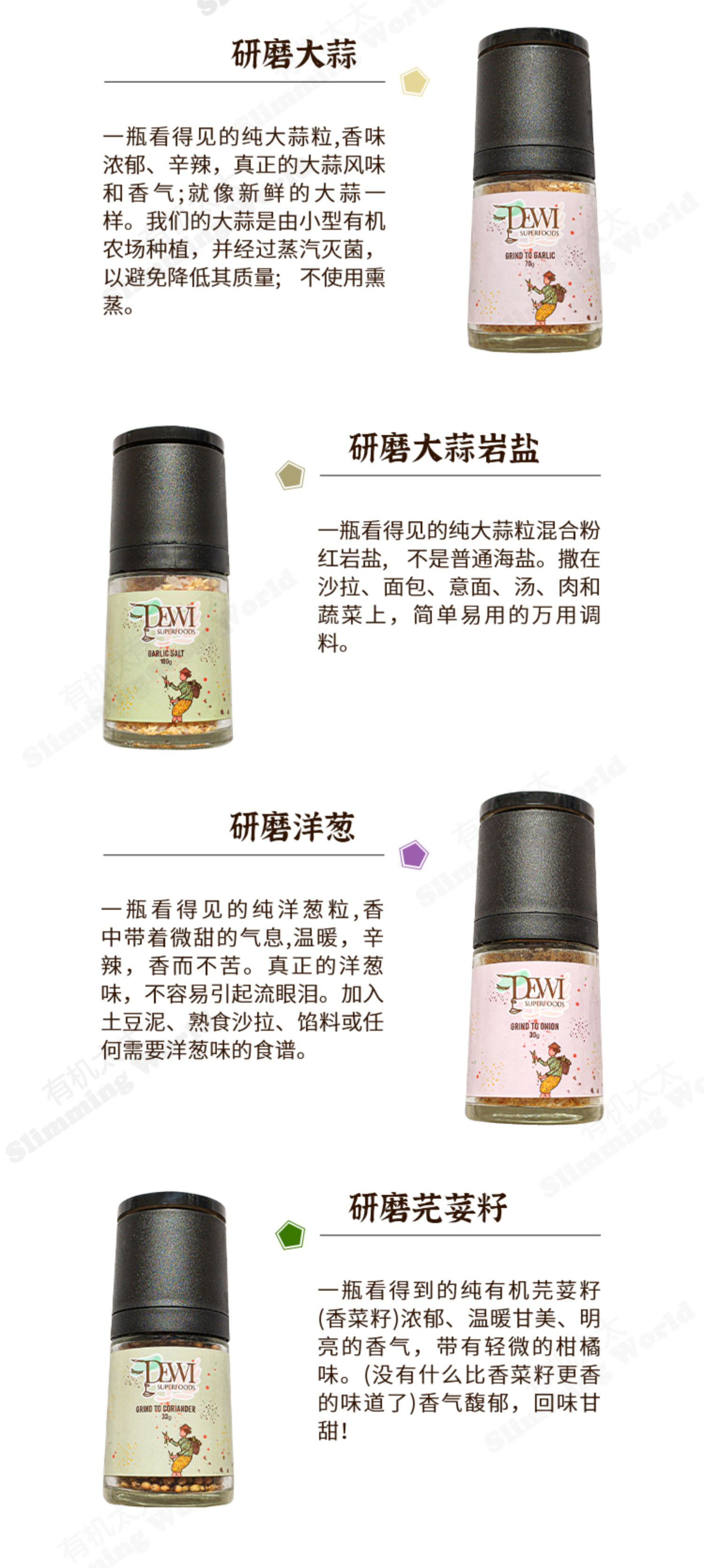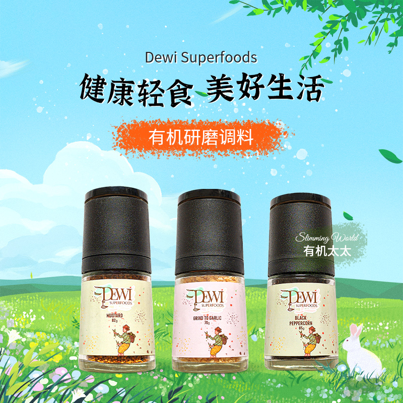 [屁侠推荐]有机太太Dewi黛维 无麸质 有机轻食 生酮 研磨调料 黑胡椒/大蒜/玫瑰岩盐/肉豆蔻粉/芫荽籽/芥末籽
