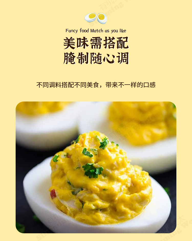 黄黑芥末籽包含了两种芥末籽,略略辣(和日料里的绿芥末不是同一种植物),在煎制肉类食材或是做烧烤时可以直接撒上,能够提味增香,去除肉类食材的膻味,也能让肉质显得更加鲜嫩。加入白醋、食盐、柠檬汁一起制作沙拉酱或者蘸酱,也可以调制各种凉菜,用来拌面条也很特别!
