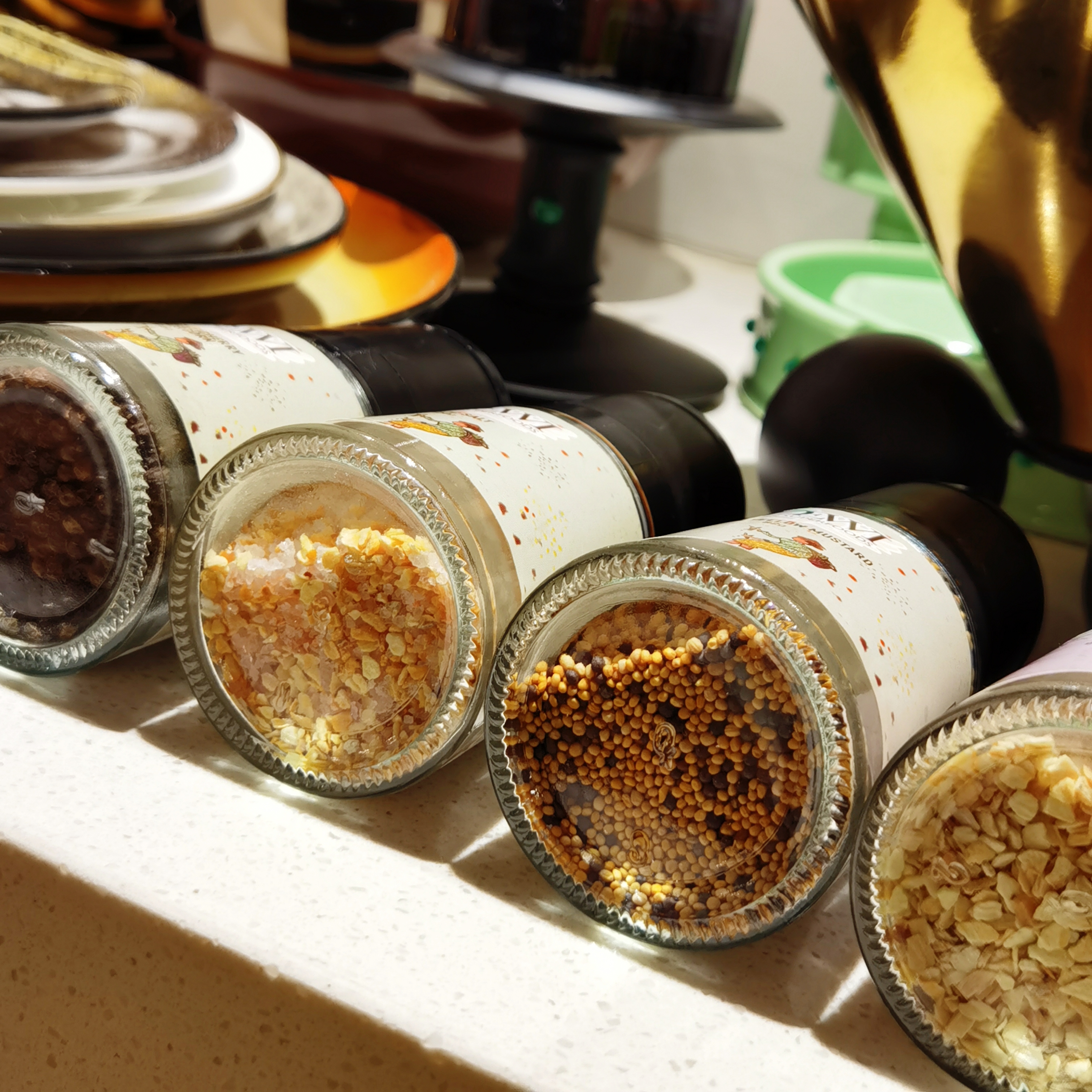 为了方便大家挑到喜欢的口味,有上足足7款哦!黑胡椒粒、黄黑芥末籽、大蒜玫瑰岩盐、大蒜,这4种是配了研磨瓶的,使用的时候转转转就行;还有肉豆蔻粉、芫荽籽粉、和中细磨黑胡椒粉,直接就是粉末,适量倒就可以。