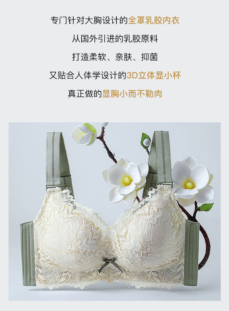 【下架】D2-【109元2件】【B-F杯】【大胸显小.乳胶款】内衣女薄款无钢圈调整型胸罩杯收副乳防下垂文胸 云庭玉立