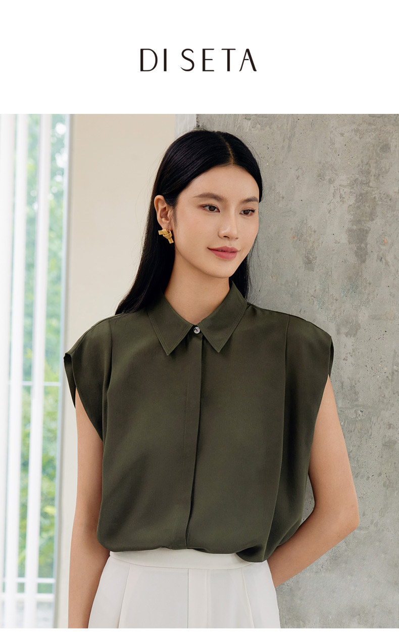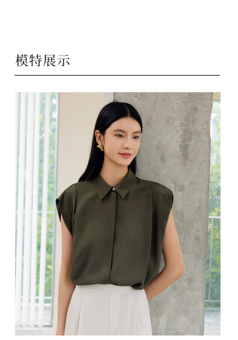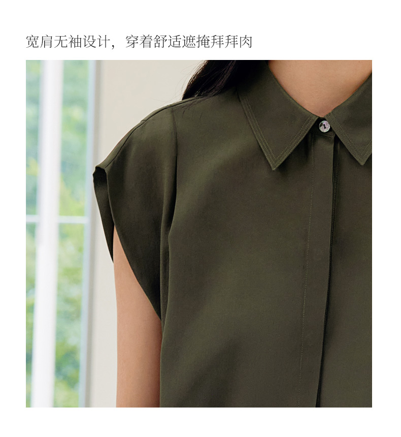 玳莎宽肩无袖真丝衬衫女2024夏季新款100%桑蚕丝通勤宽松上衣 EB31005