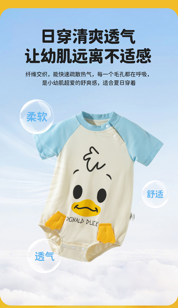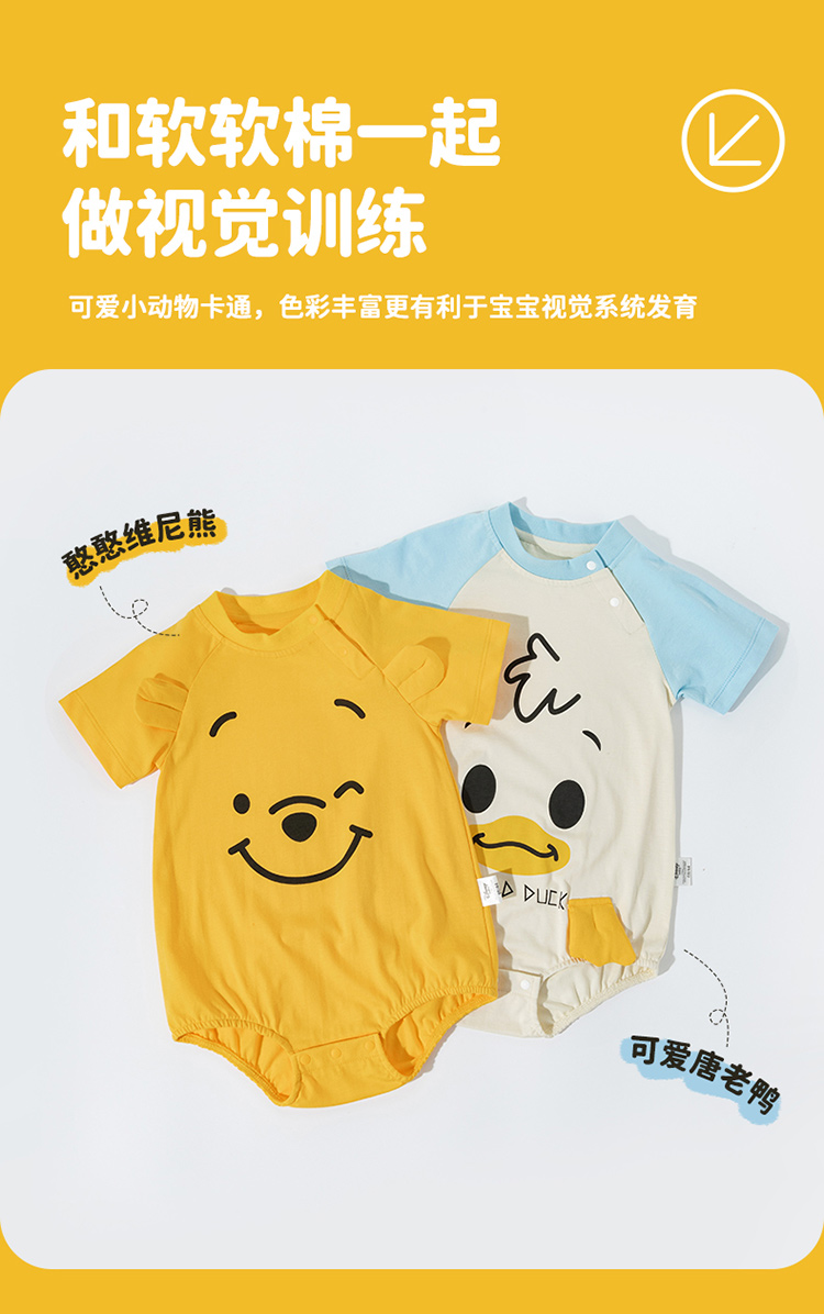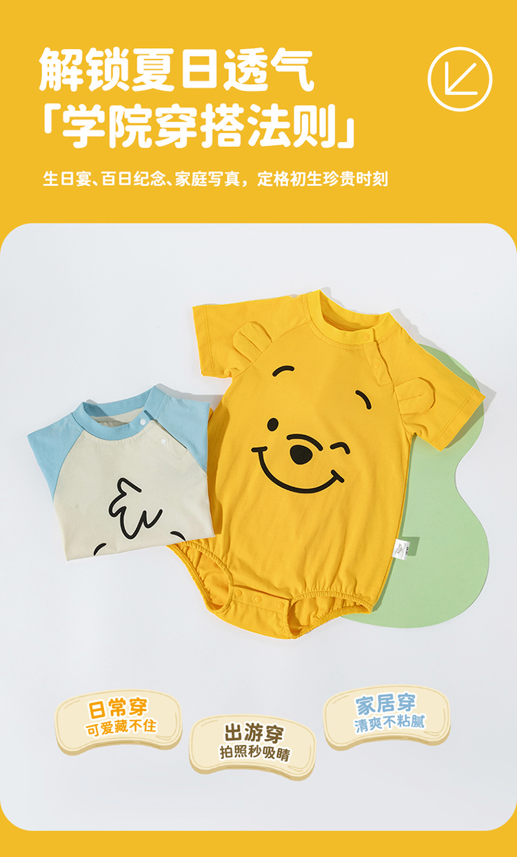 迪士尼【纯棉A类】25夏季新款男女宝宝包屁衣亲肤透气哈衣爬服连体衣ZD2EB001