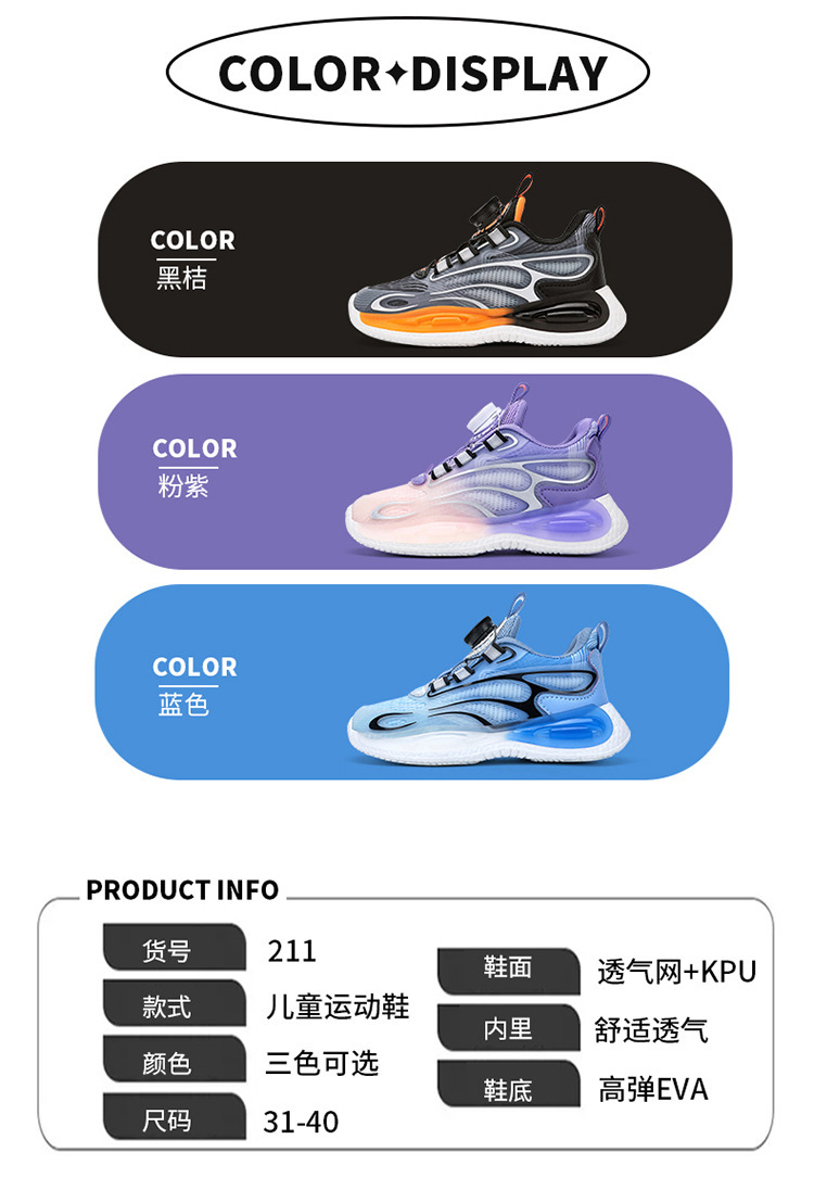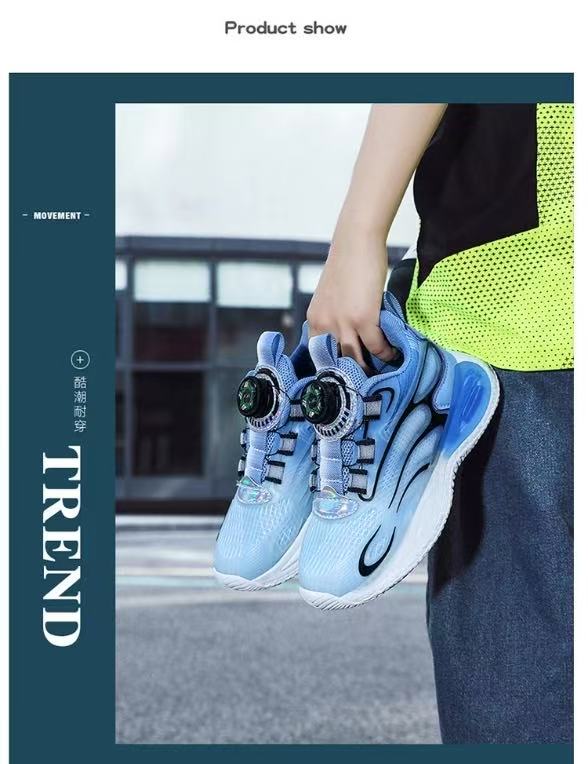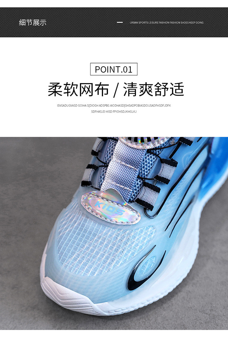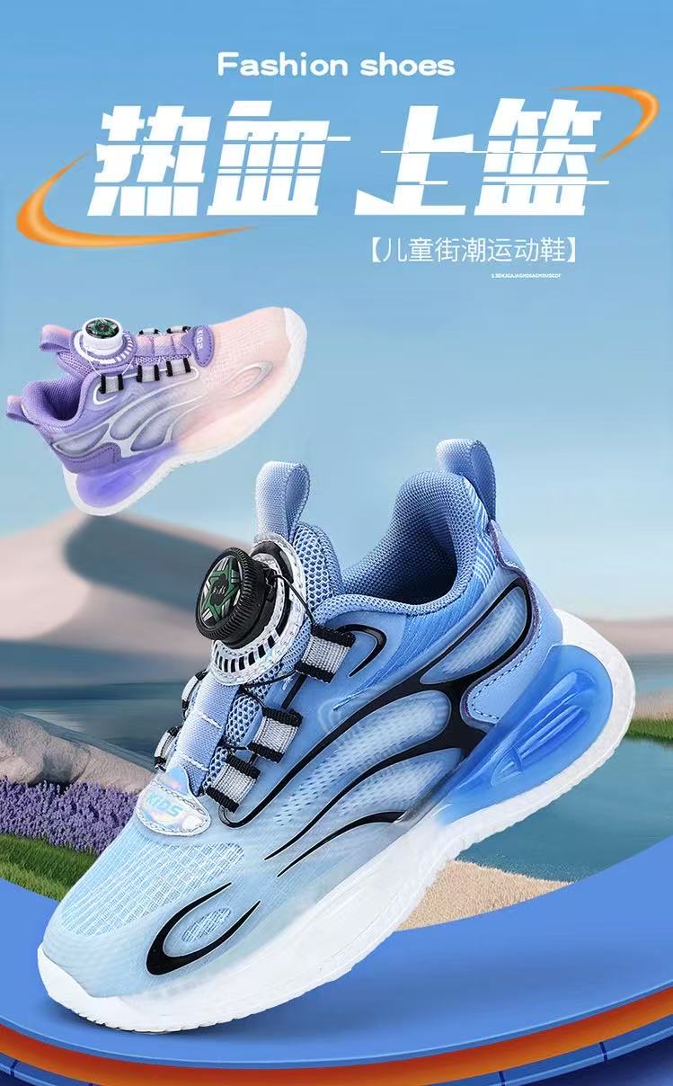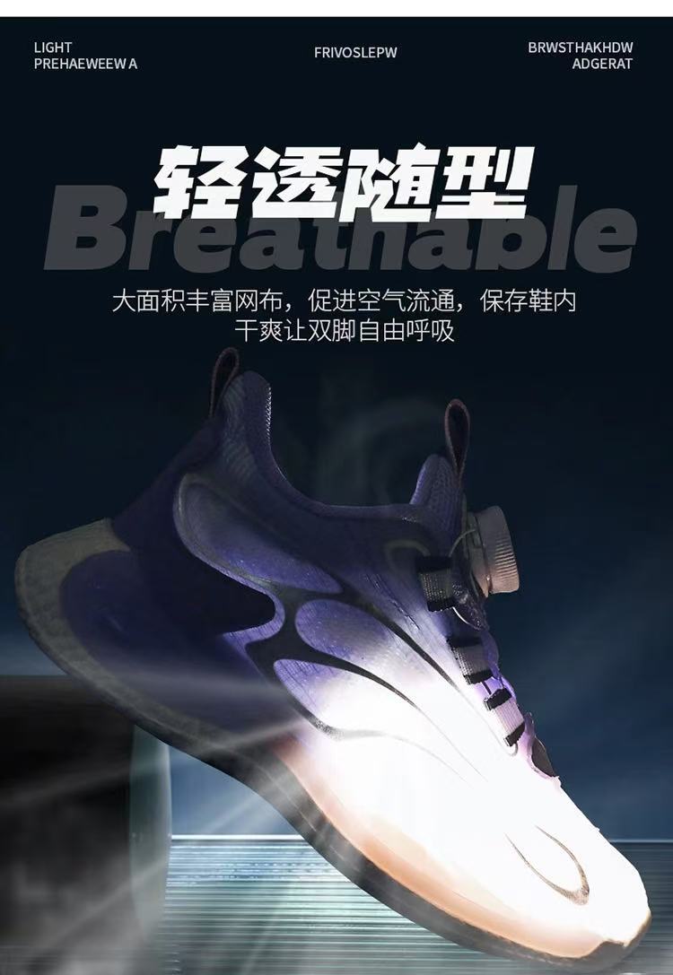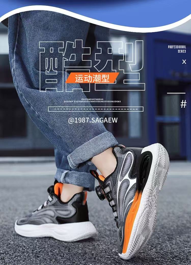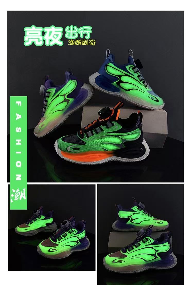 男童鞋透气夜光旋转纽扣男孩网面中大童休闲篮球运动女孩儿童跑步