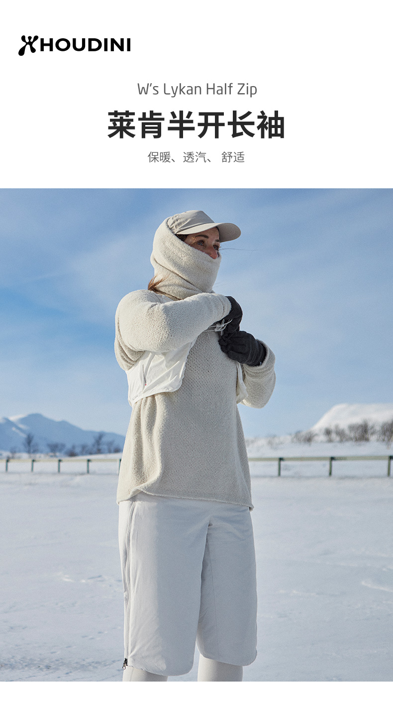 HOUDINI胡丁尼Lykan Half莱肯户外25冬新女套头半拉链长袖衫毛衣 830066