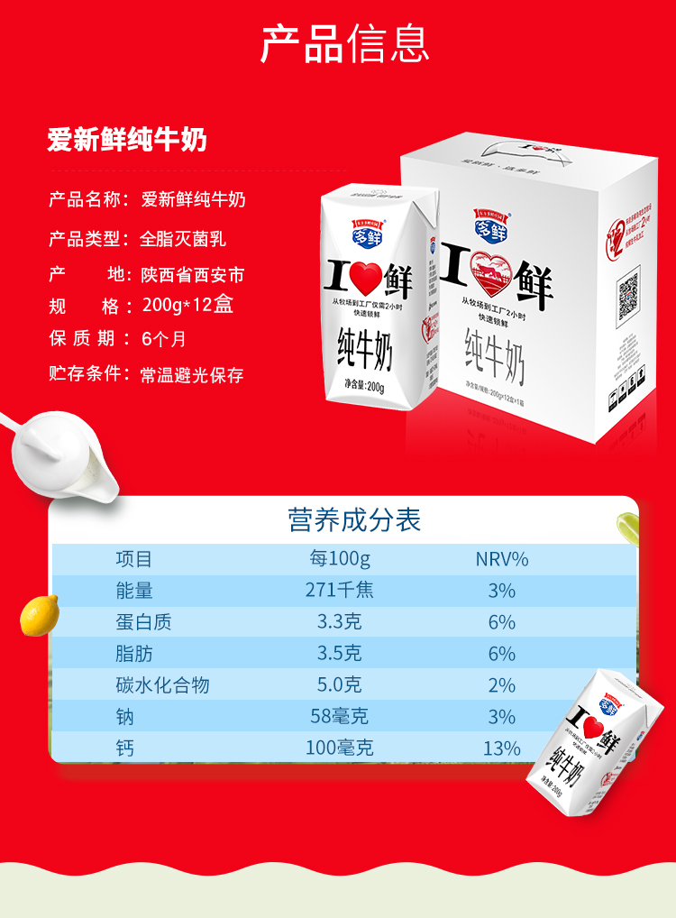 多鲜爱新鲜纯牛奶 200g*12盒 精品礼盒装