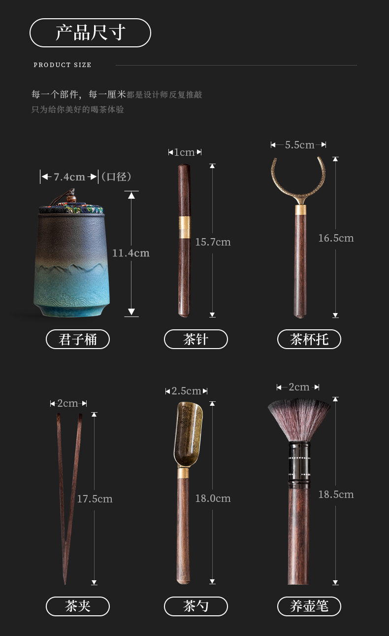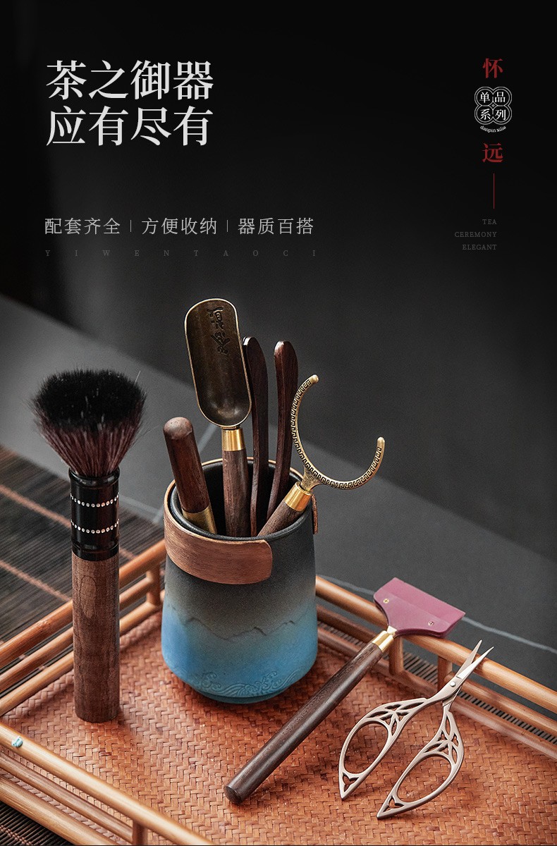 陶瓷六君子泡茶工具配件黑檀木茶刮茶夹茶针茶剪刀6君子套装 怀远君子桶(有扣)+五君子