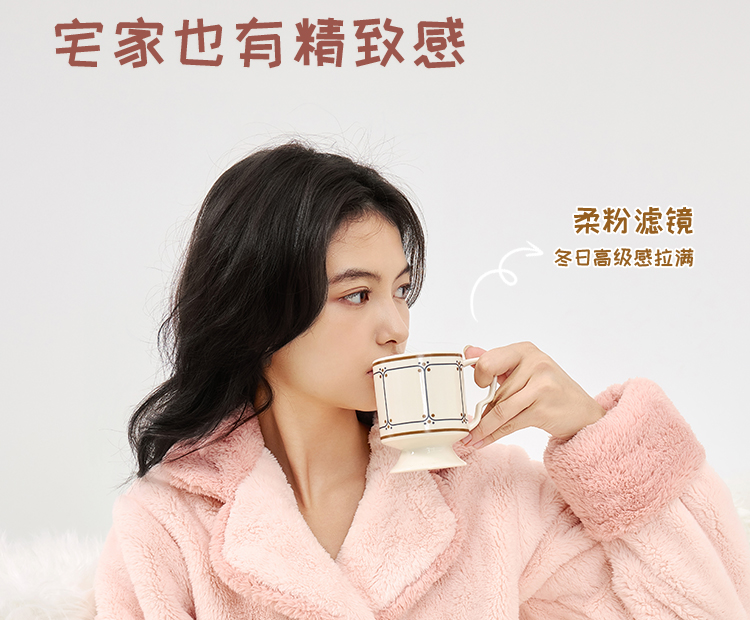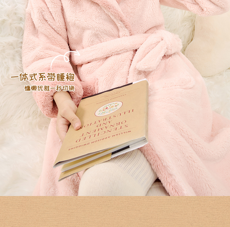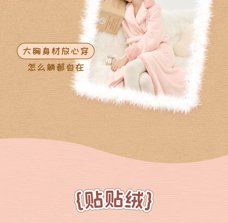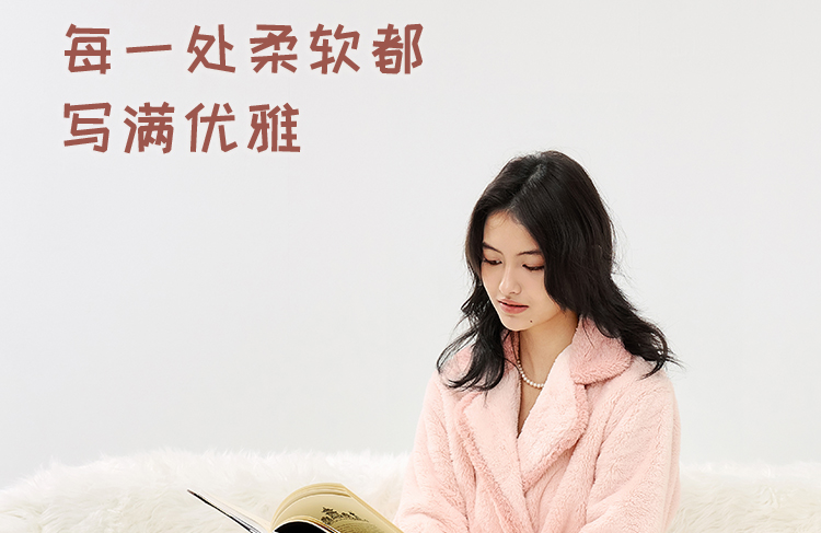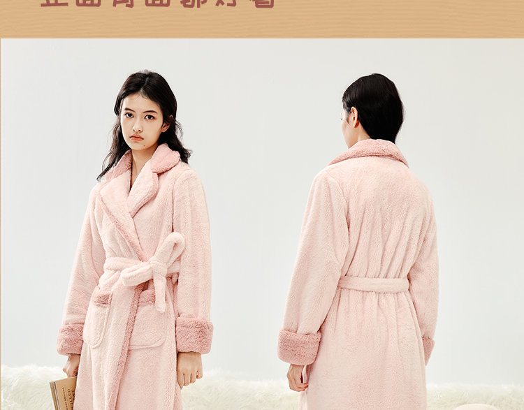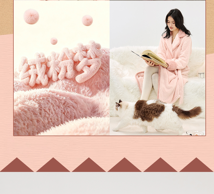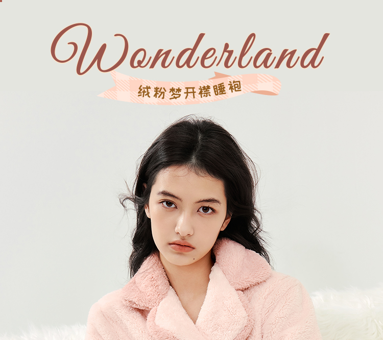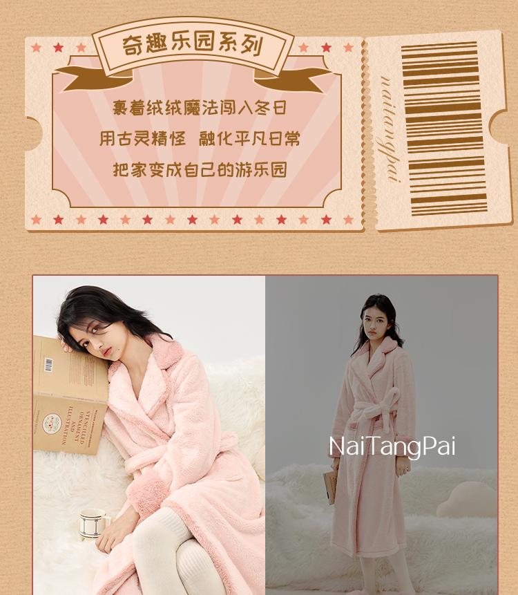 奶糖派奇趣乐园绒粉梦开襟睡袍毛绒舒适亲肤休闲保暖秋冬家居服女