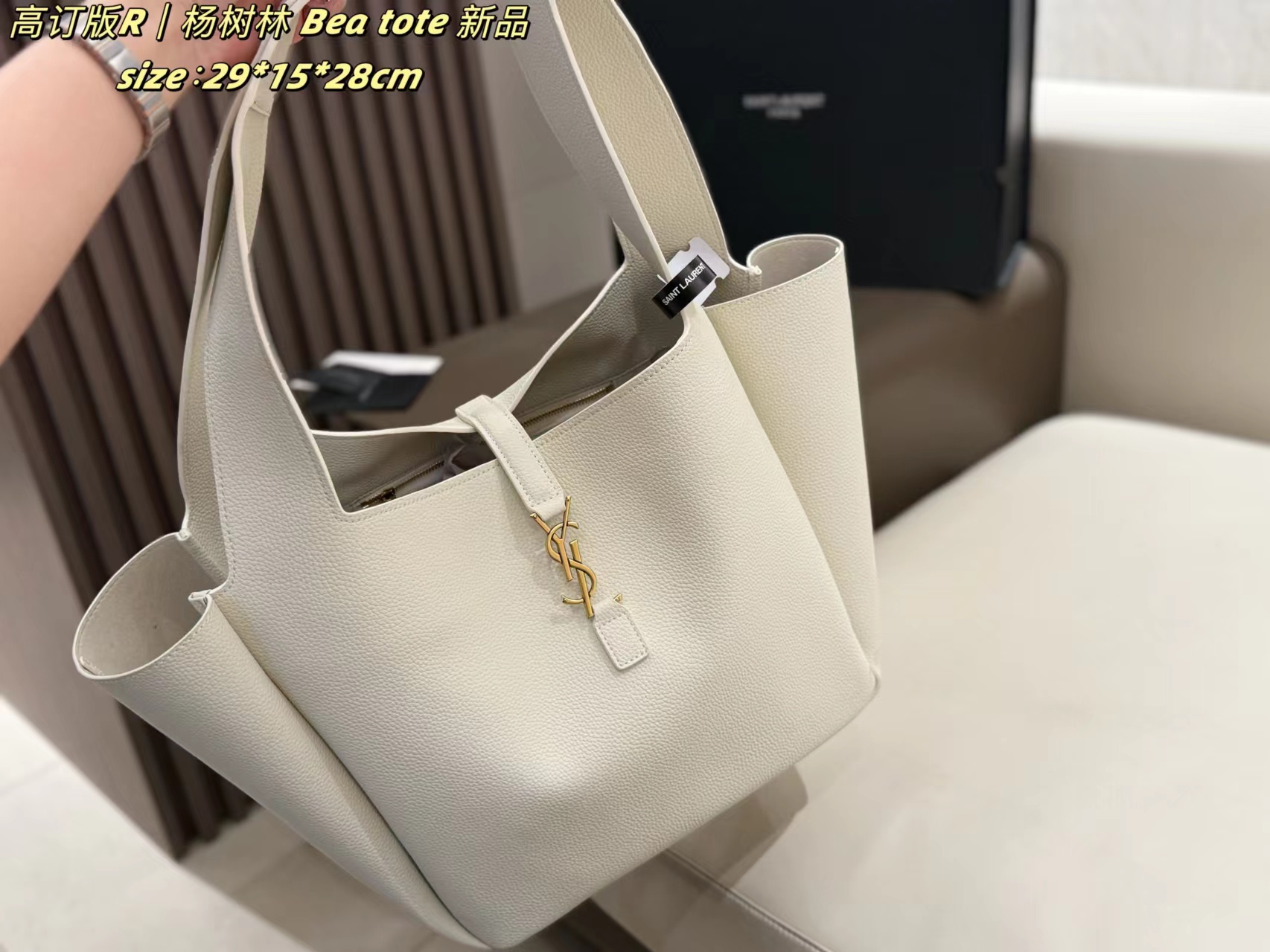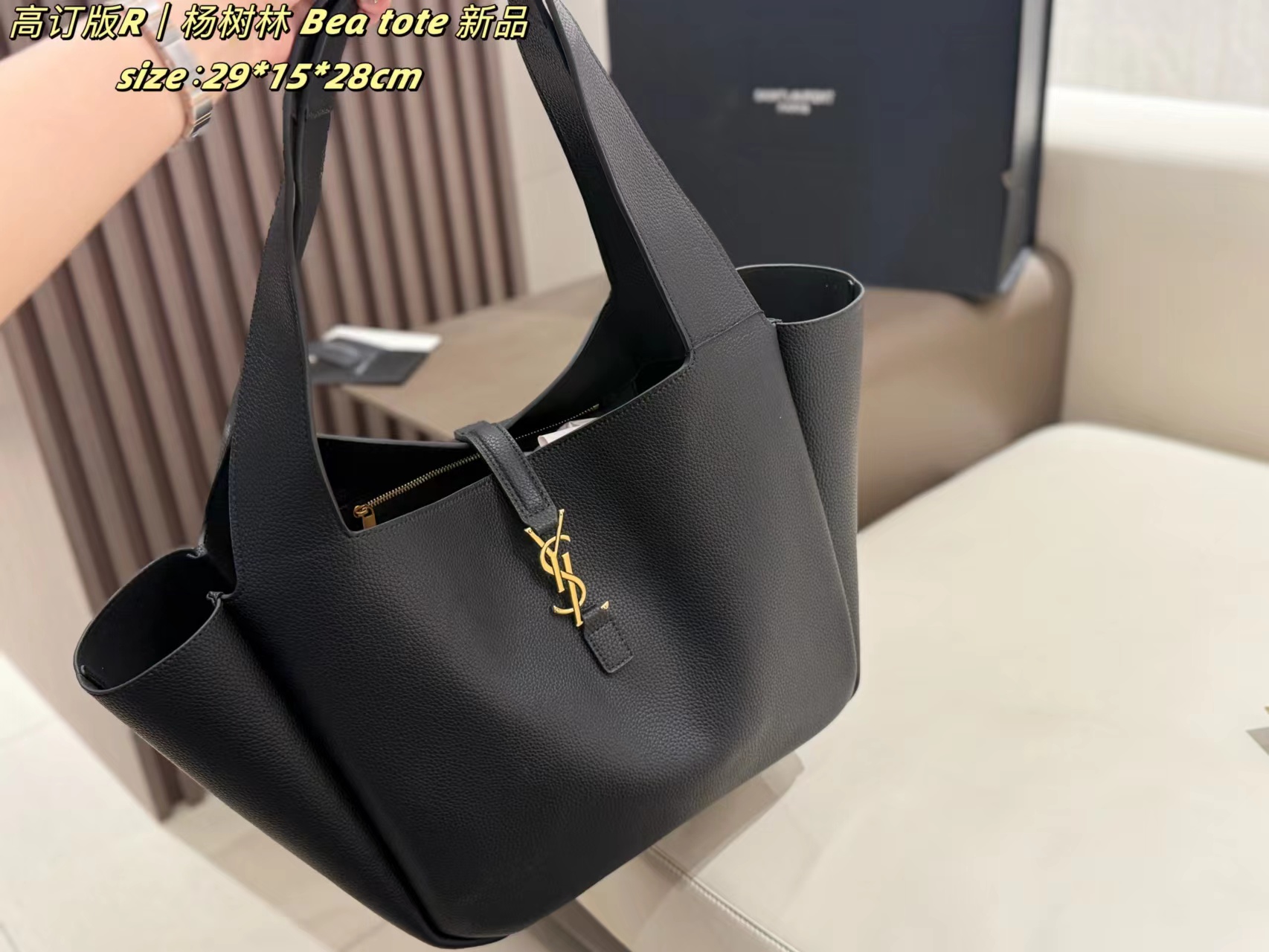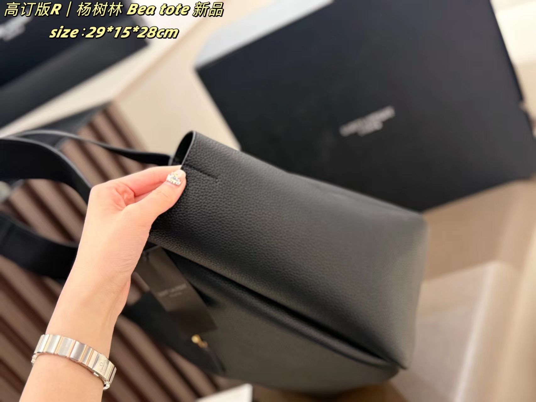 新品大购物袋折叠盒托特包,采用柔软粒面小牛皮,手感超赞!金色logo点缀,简约又有辨识度?。大容量设计,通勤装电脑、文件都OK,日常出行也很实用。肩带宽厚,背起来很舒服,是时髦又实用的百搭包包!