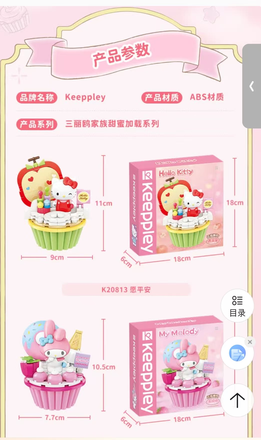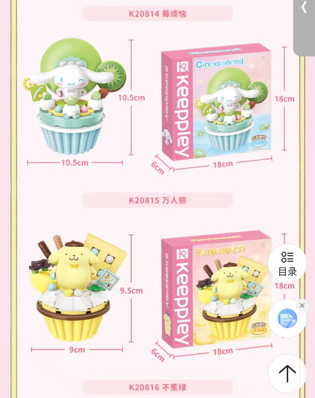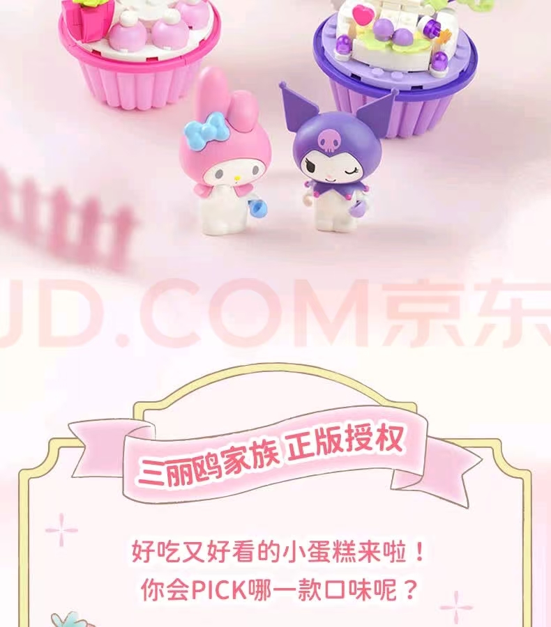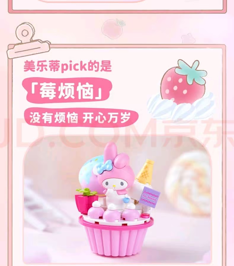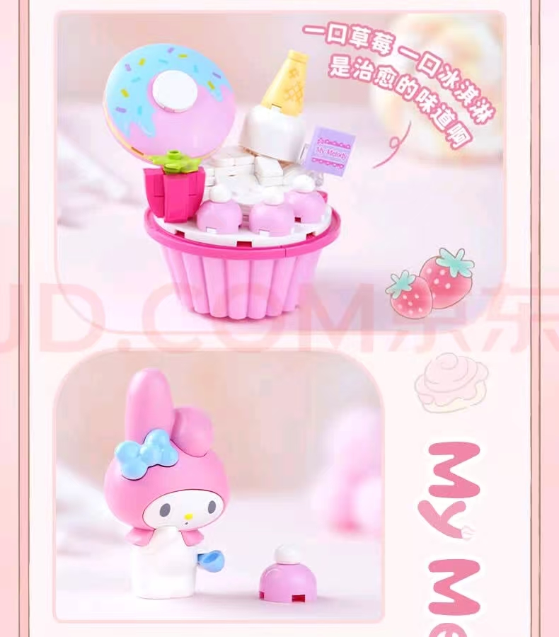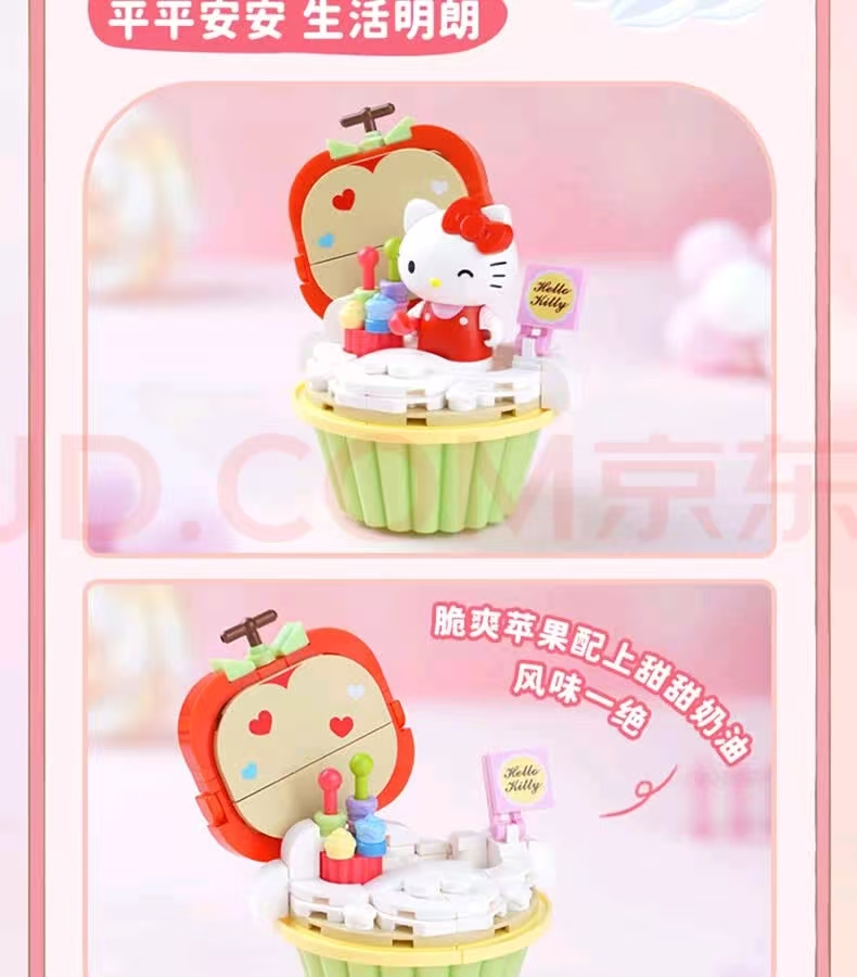 helloKitty三丽欧凯蒂猫蛋糕杯呆萌玩具模型女生拼装桌面摆件礼物bj