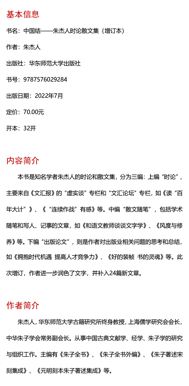 中国结 朱杰人时论散文集 增订本 正版 精装 华东师范大学出版社