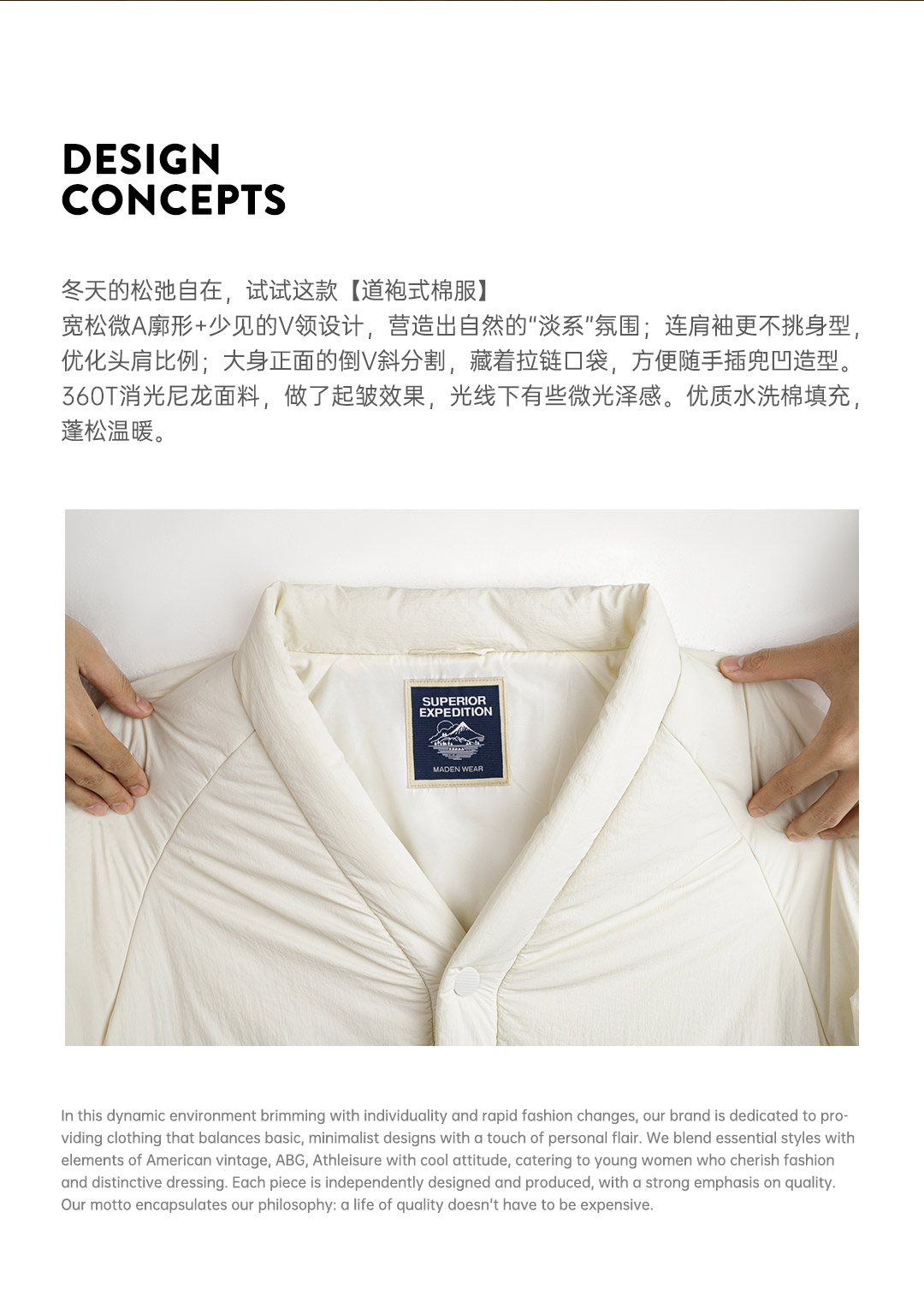 马登廓形道袍式棉服复古V领保暖防寒棉袄简约厚面包服外套冬季女
