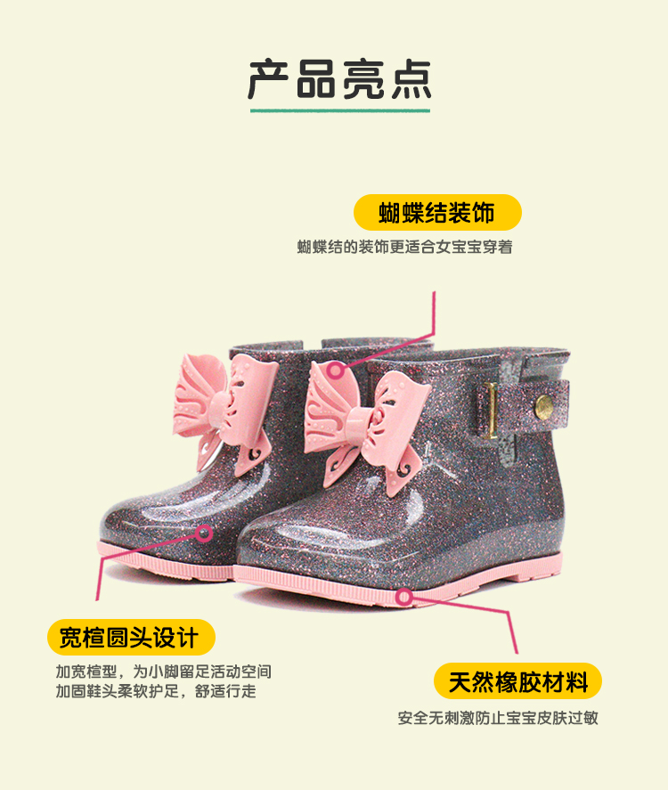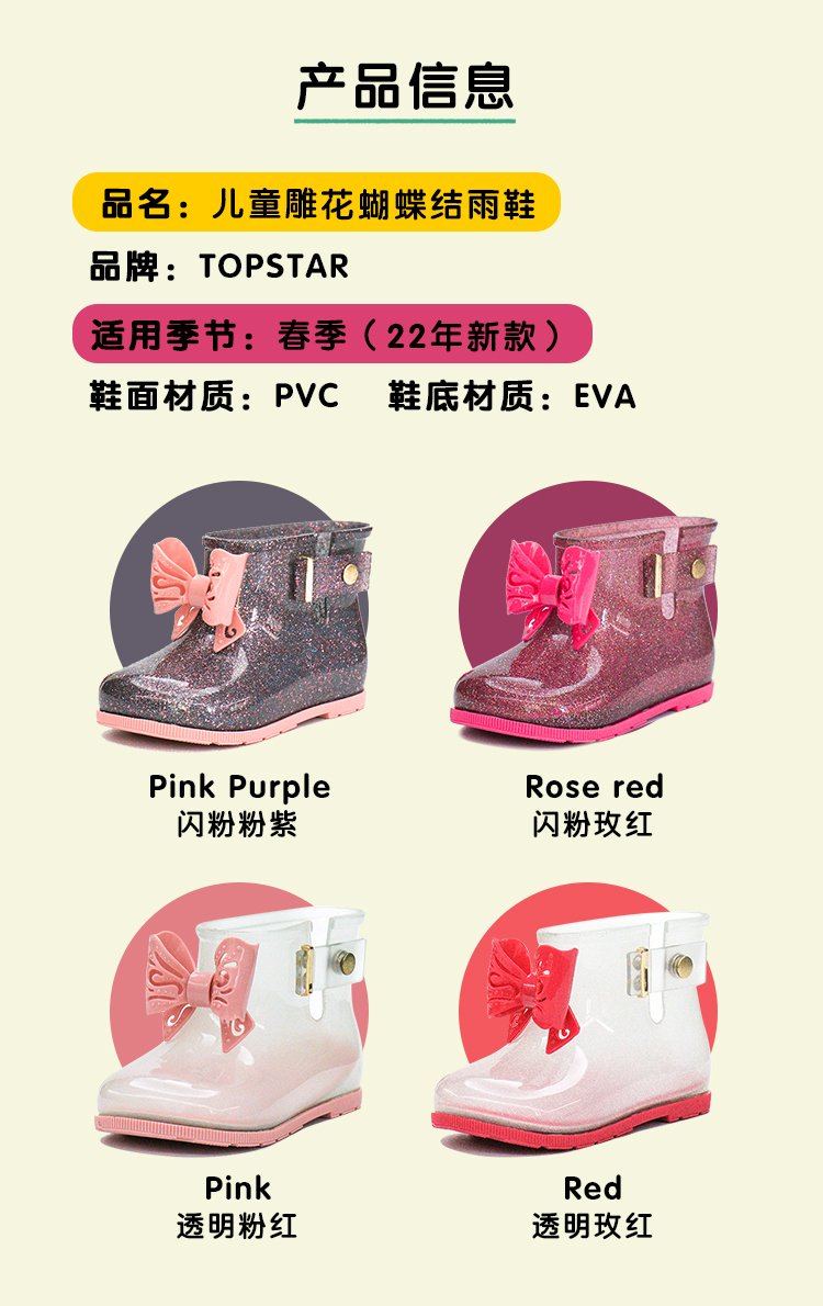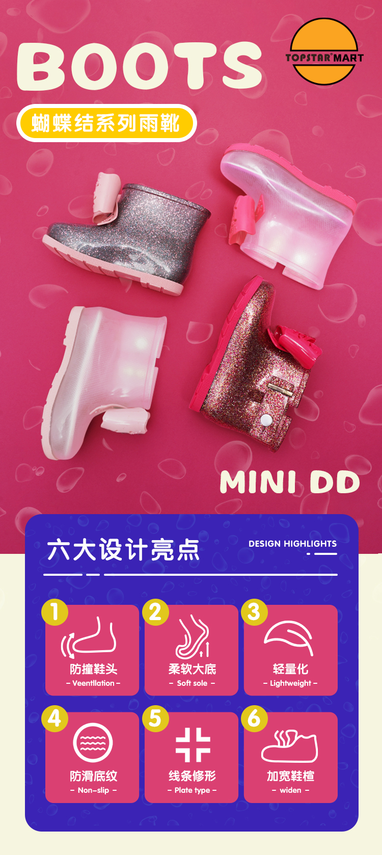 TOPSTAR&MINI DD儿童雨靴男童防滑水靴女童可爱水鞋幼儿园胶鞋 闪