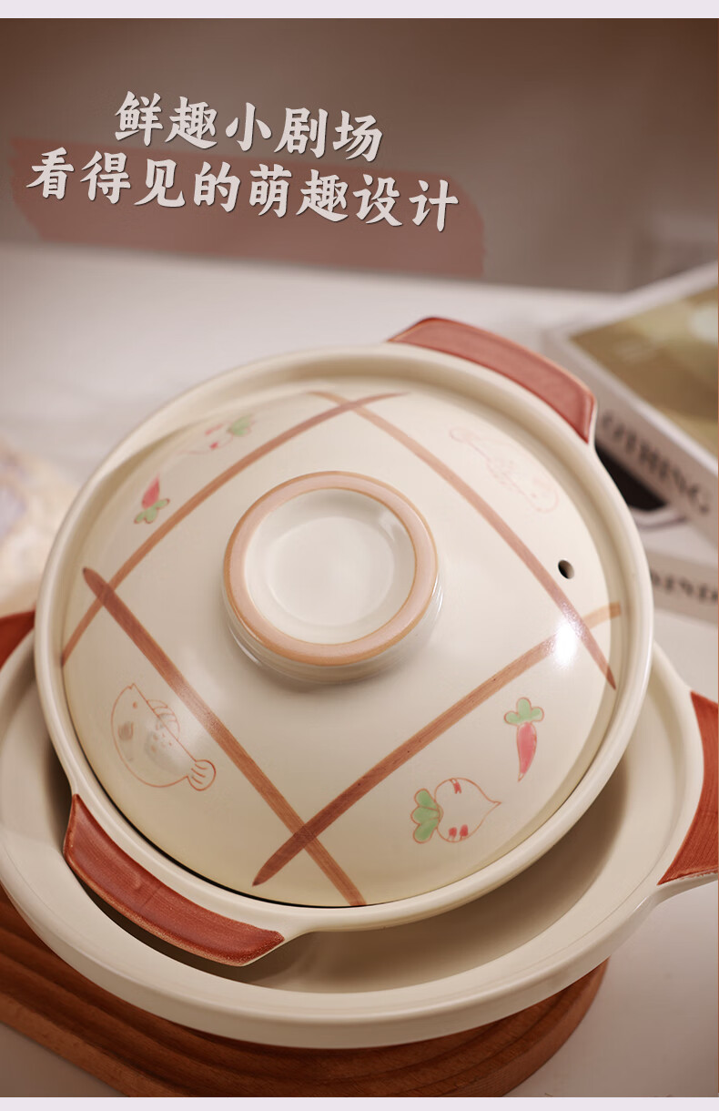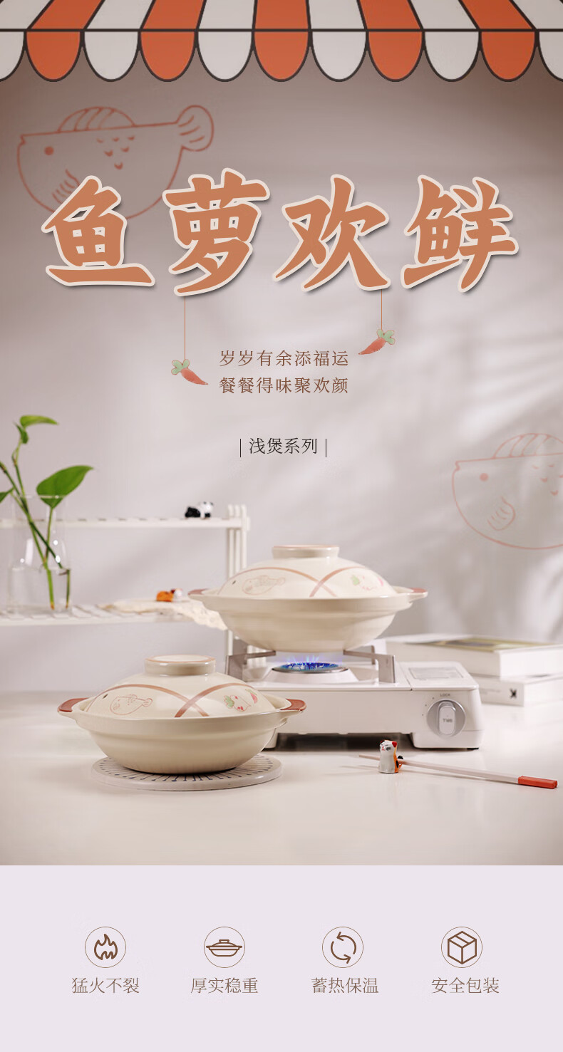 【鱼萝欢鲜浅煲】陶煲王新款陶瓷煲仔饭专用砂锅广东啫啫煲浅口土沙锅耐高温可干烧