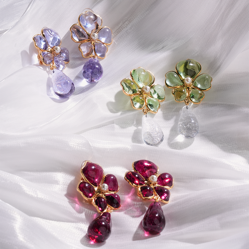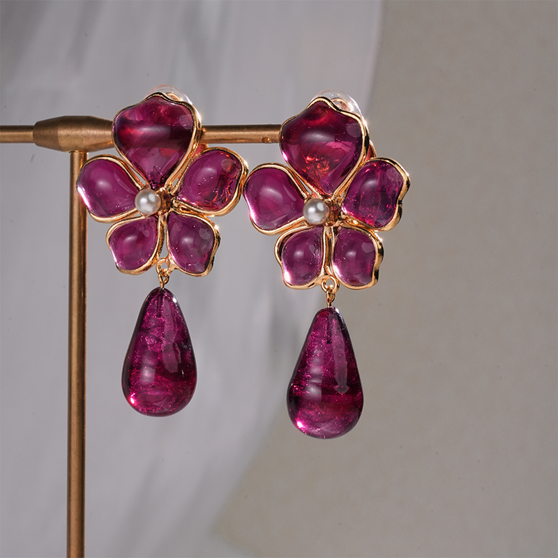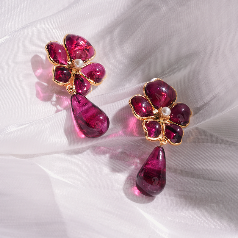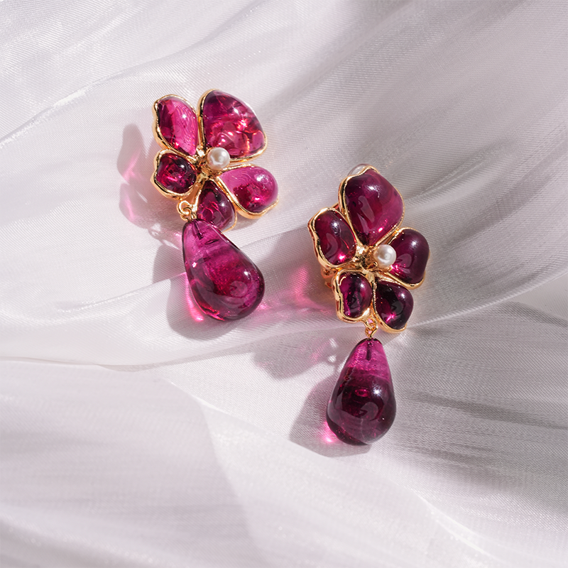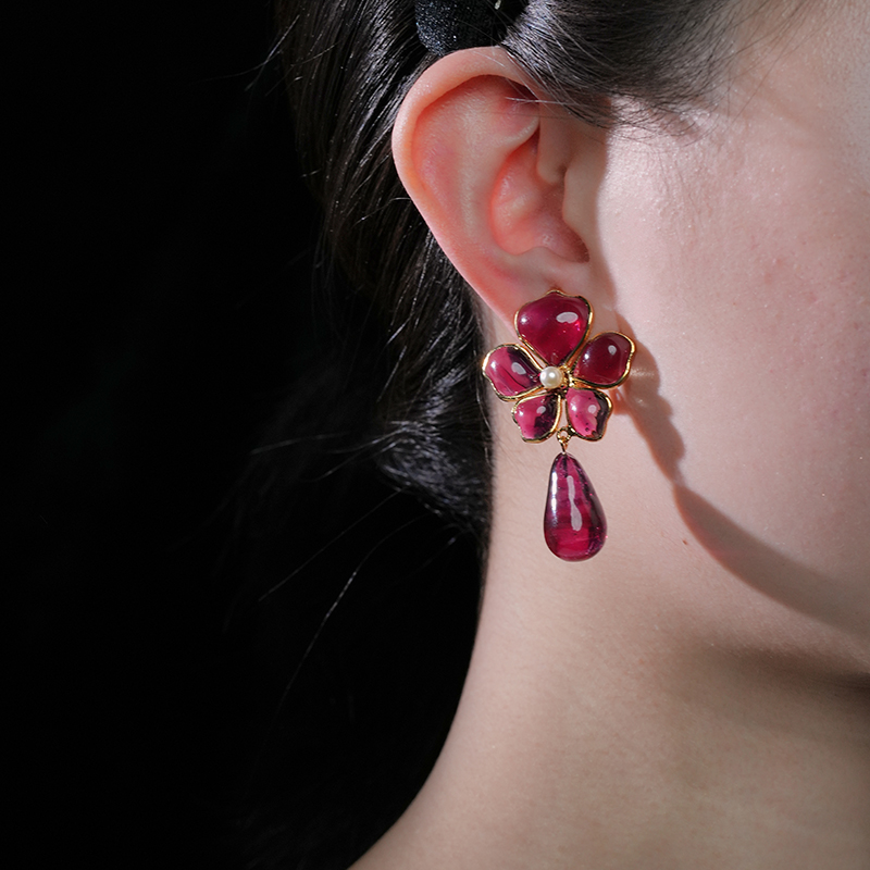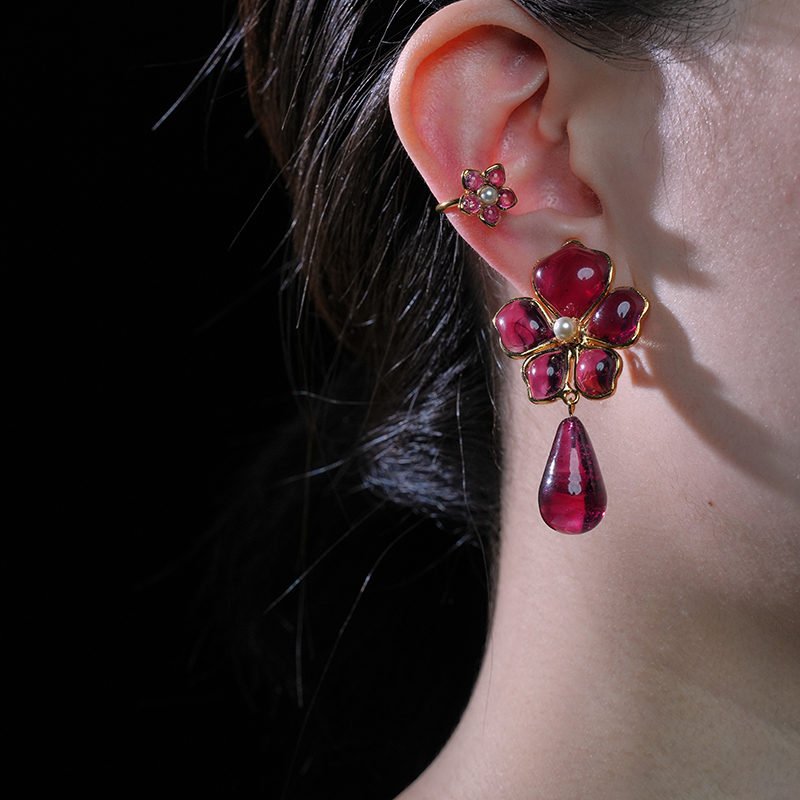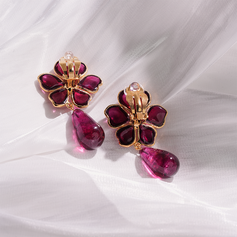 订购5个月到|Gripoix Paris-Tropical Flower-流光红 耳夹[法国设计师]