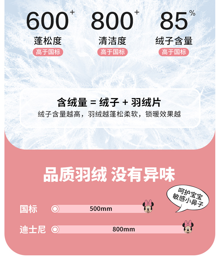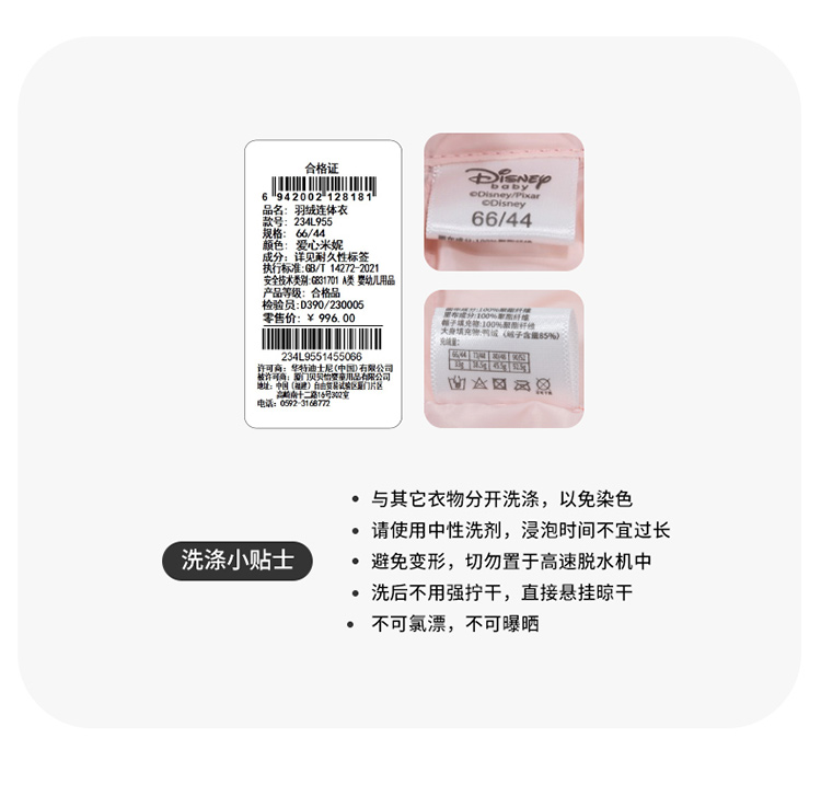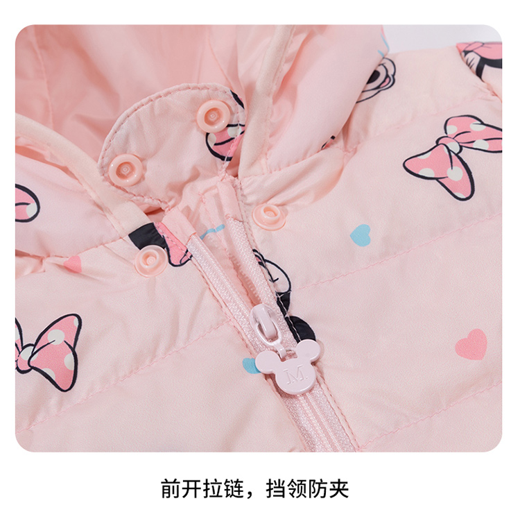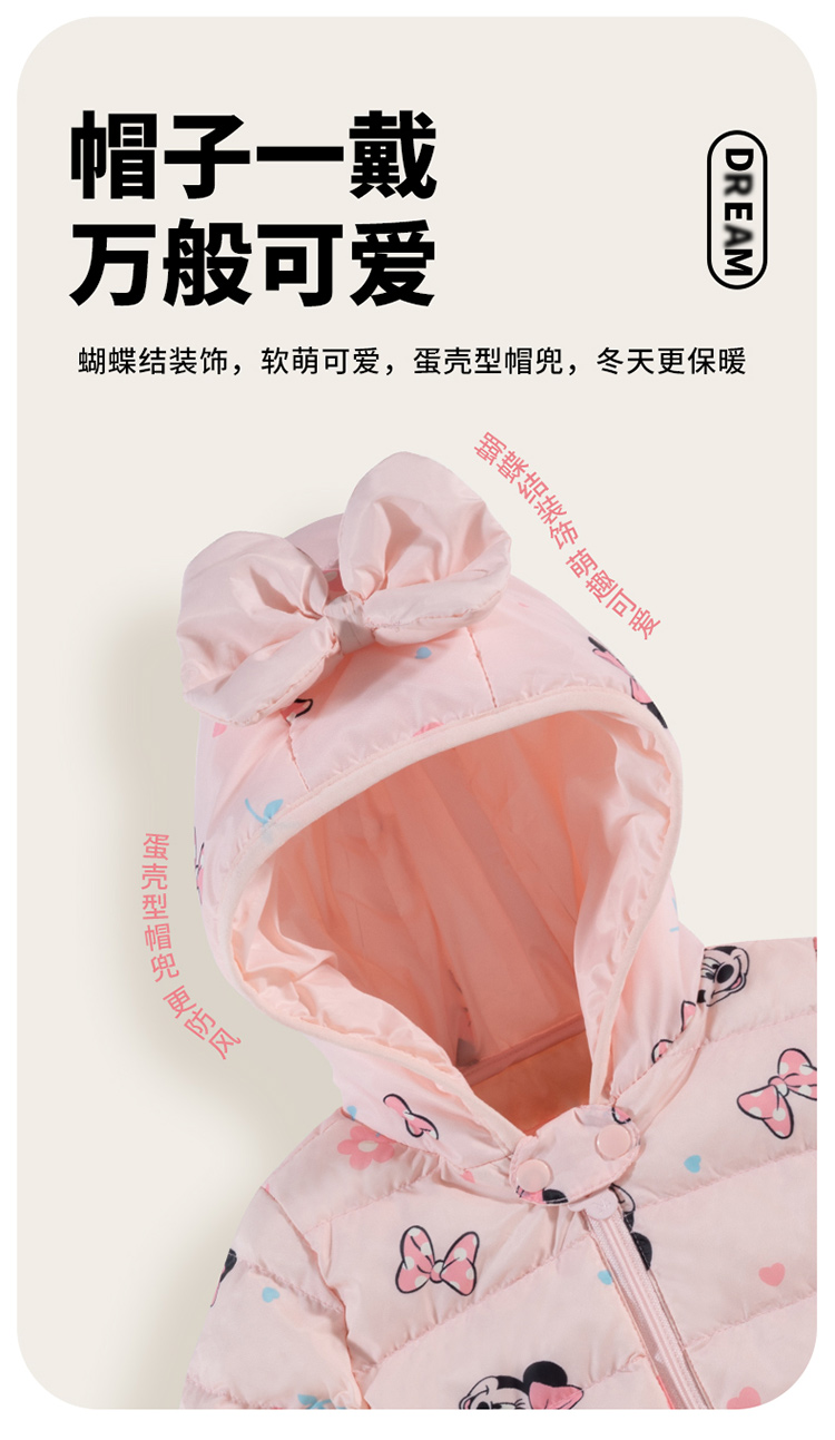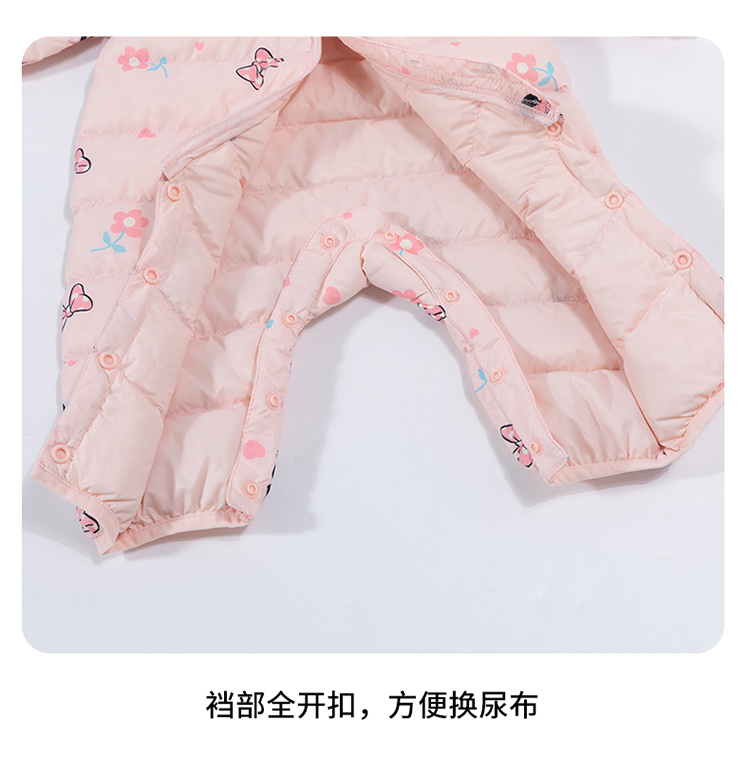 迪士尼童装秋冬款米妮满印连帽羽绒连体衣宝宝保暖舒适冬装羽绒服234L955