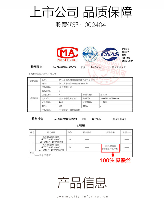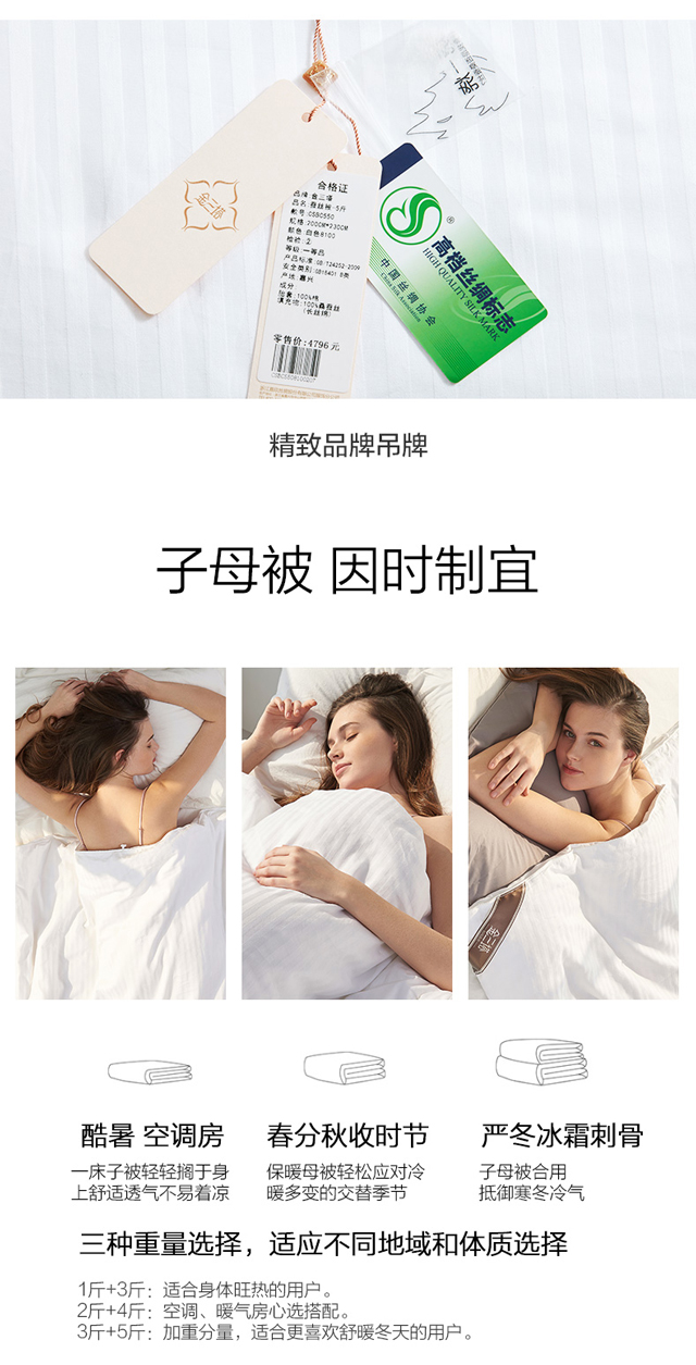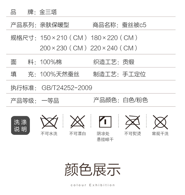 【桑蚕丝被3-5】金三塔100%桑蚕丝蚕丝被 全棉胎布套 CSBC540/CSBC550