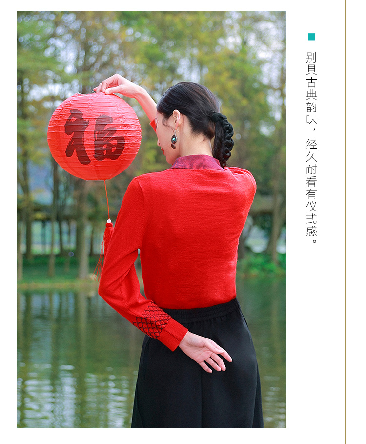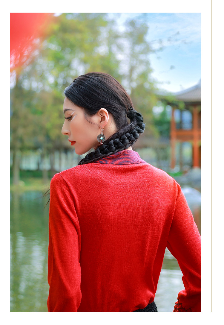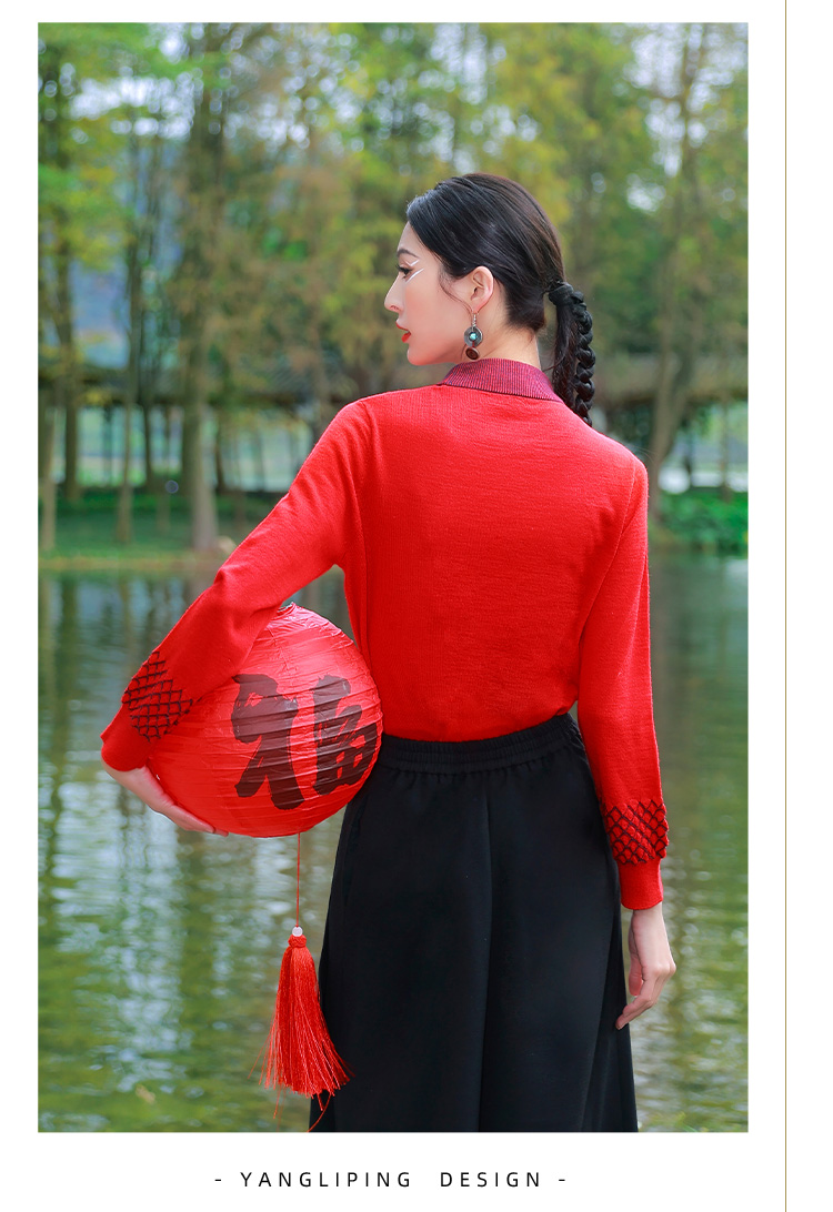 朱红净兮针织外套 | 杨丽萍经典款 | 红色显气色 蓝色日常休闲