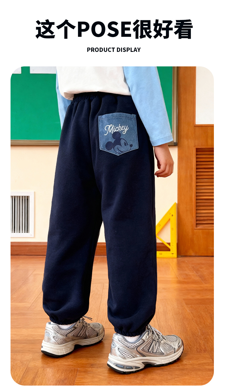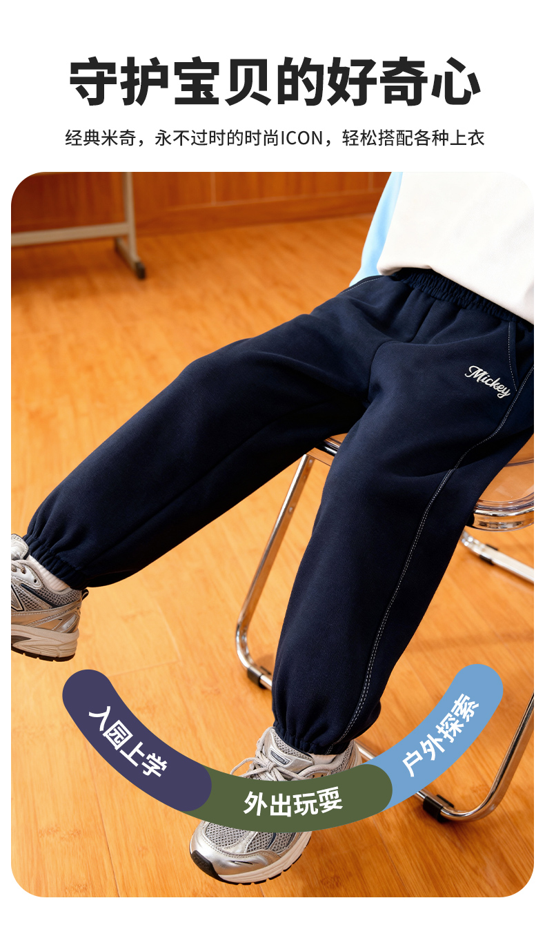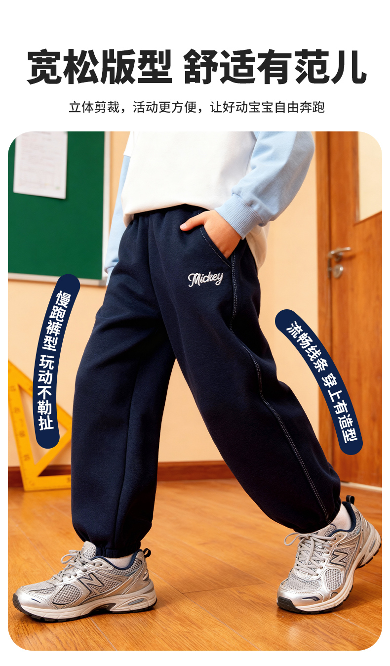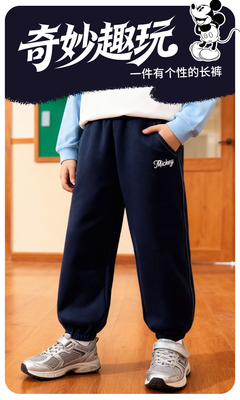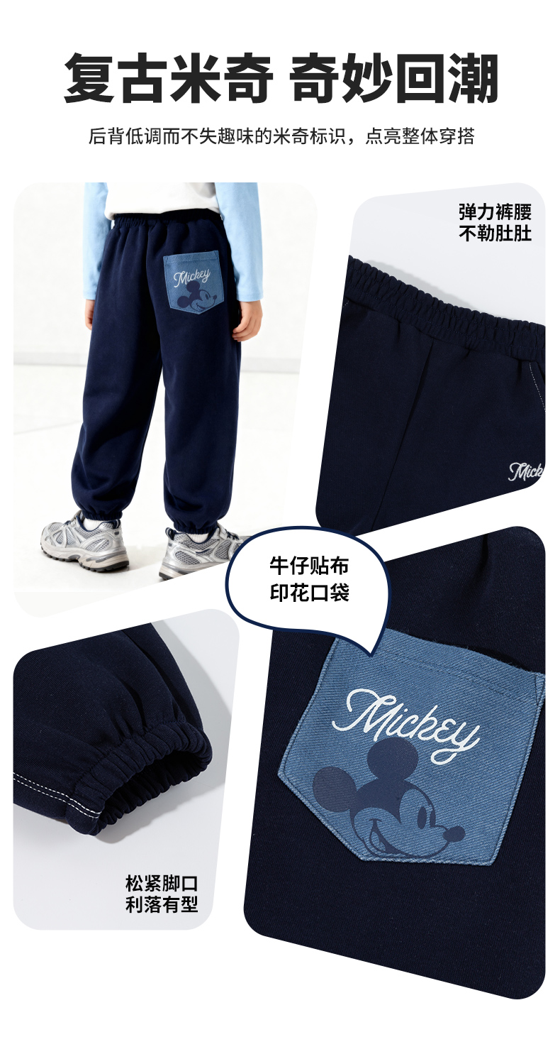 迪士尼(Disney)童装男童束脚长裤复古米奇印花休闲运动宽松卫裤2026春季新款裤子ZD1FK020