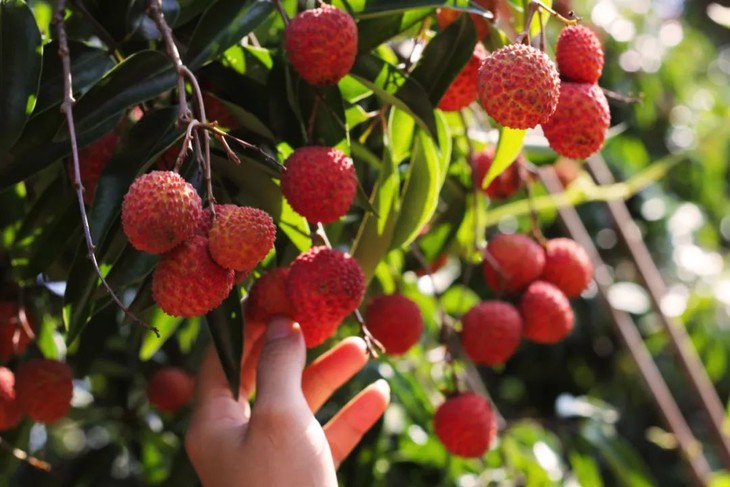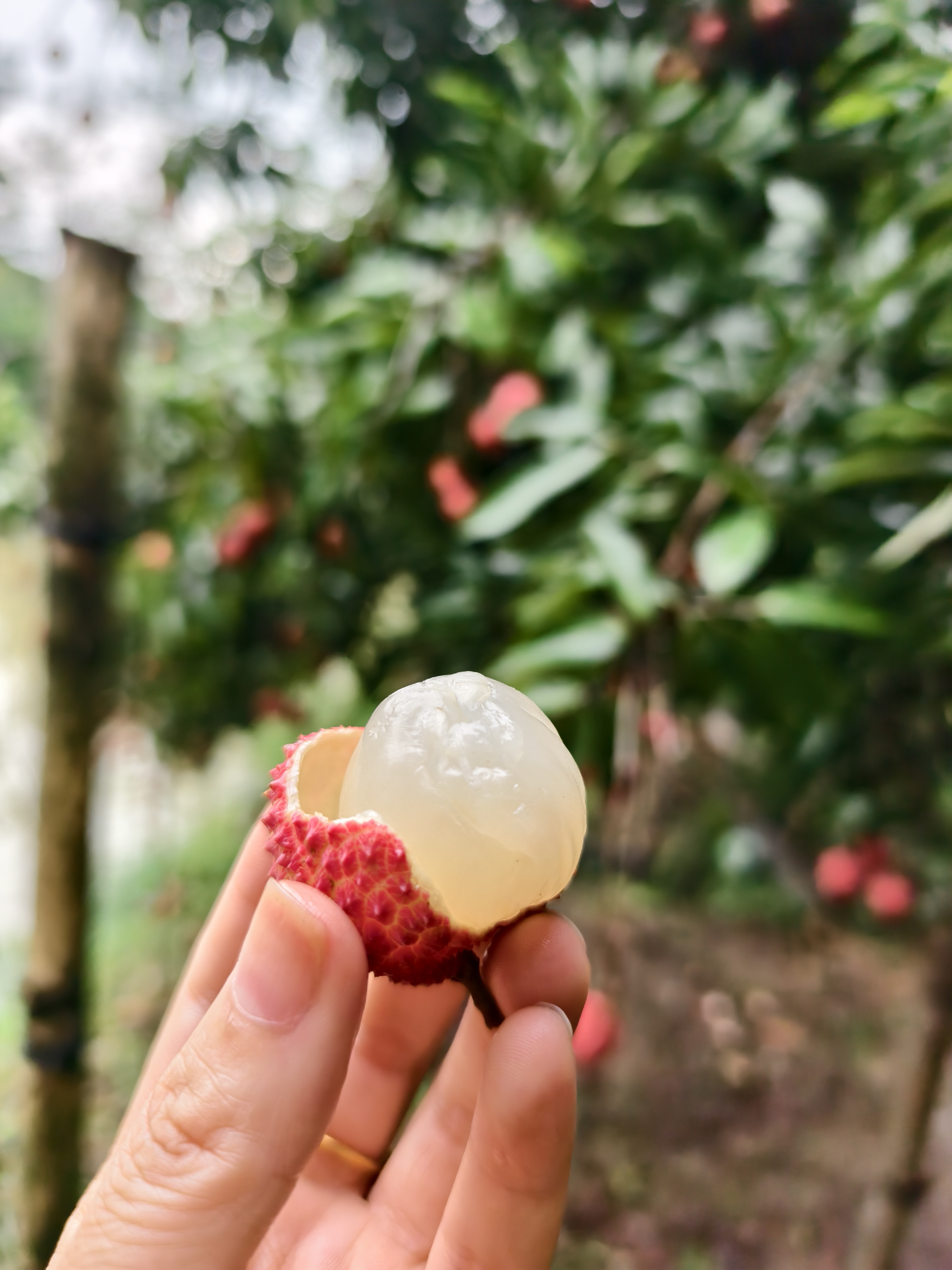 待到成熟,漫山遍野的小红球都挂在枝头上摇曳,随手采摘一颗桂味,轻轻一掐,露出的果肉像玉石一样,在阳光下泛着剔透水润。