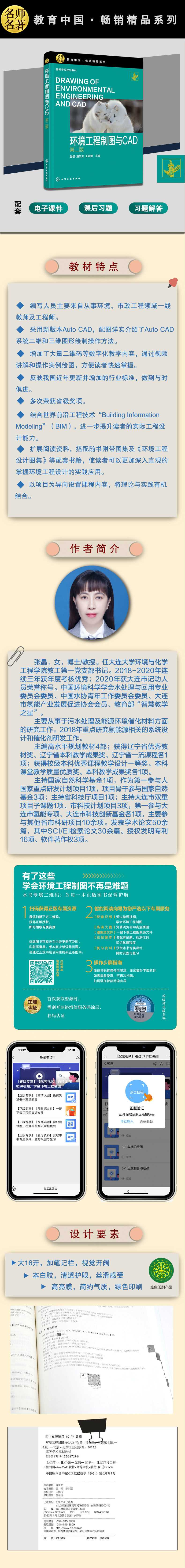 4 《环境工程制图与CAD》(第二版)根据AutoCAD在环境工程设计中的系统应用,并结合具体的水污染控制、大气污染控制、固体废物处理和噪声污染控制等应用实例制图,对个作图环节进行了实训指导,以便读者熟悉CAD系统的操作和规范,掌握使用技巧。
