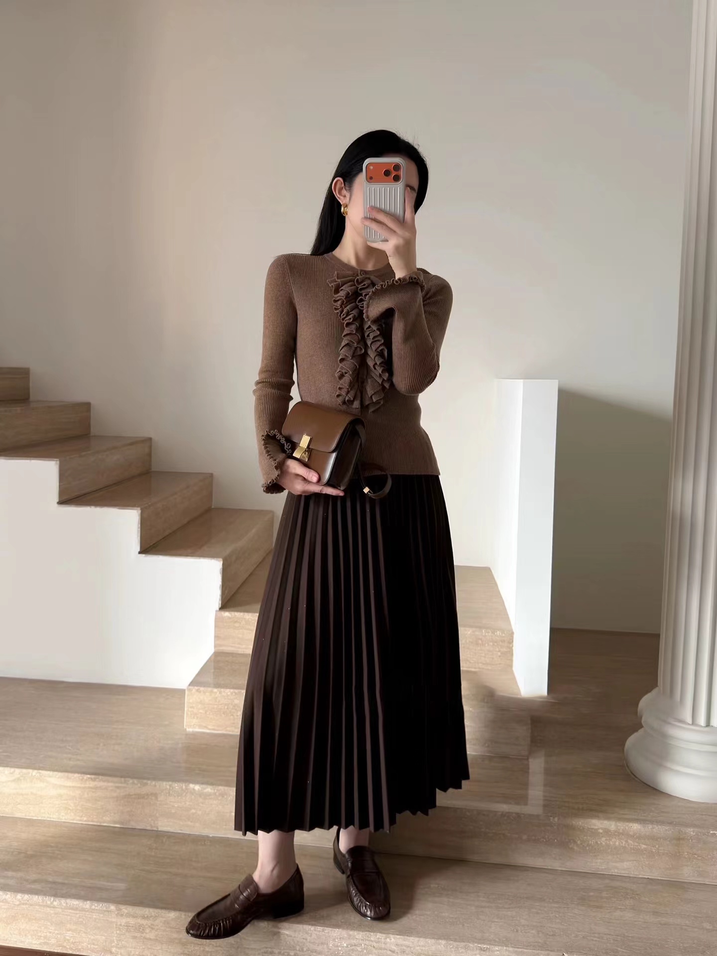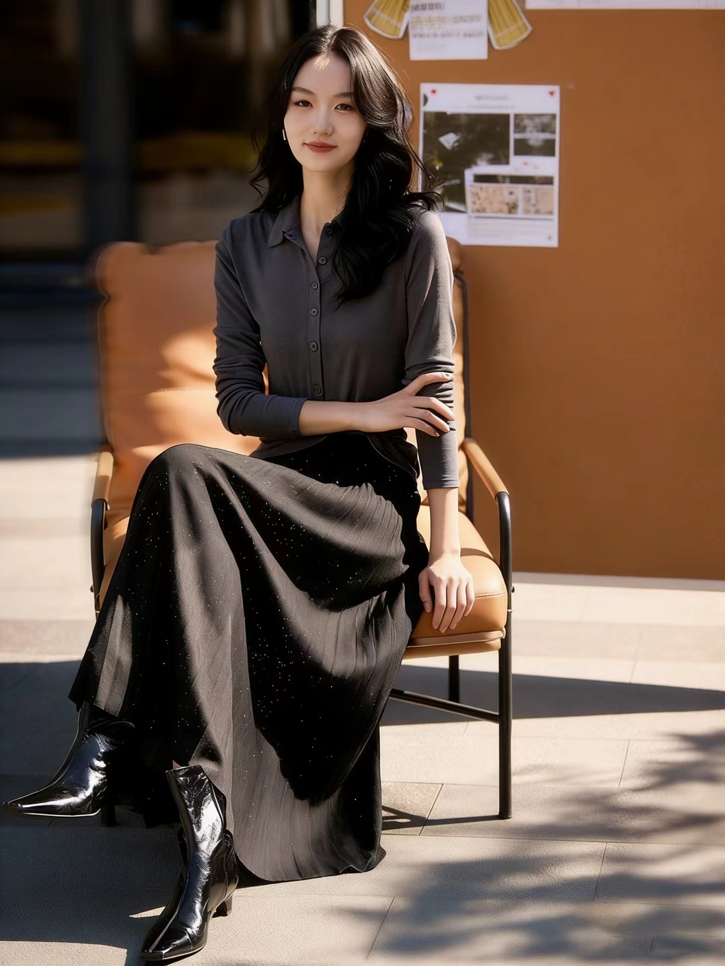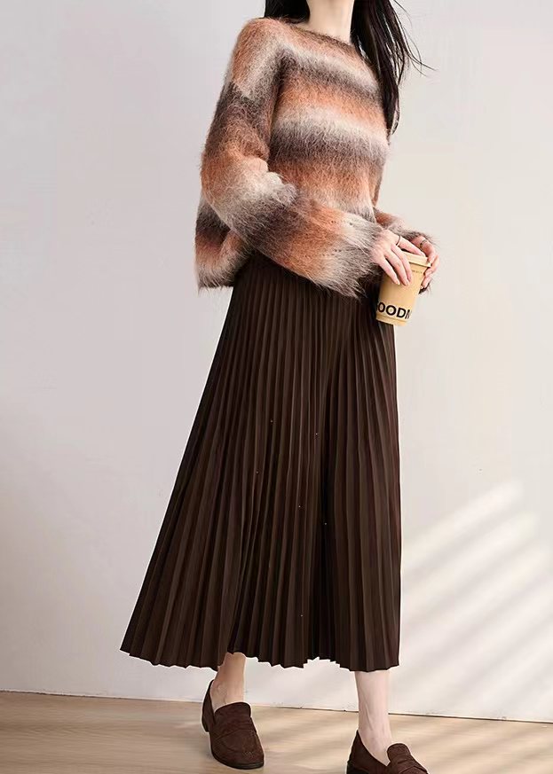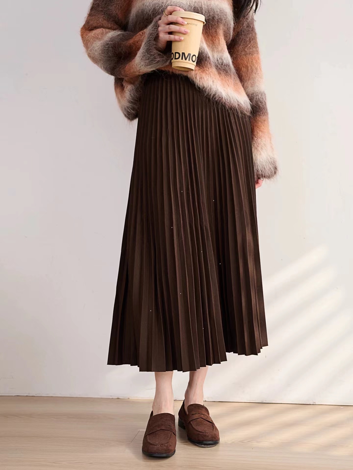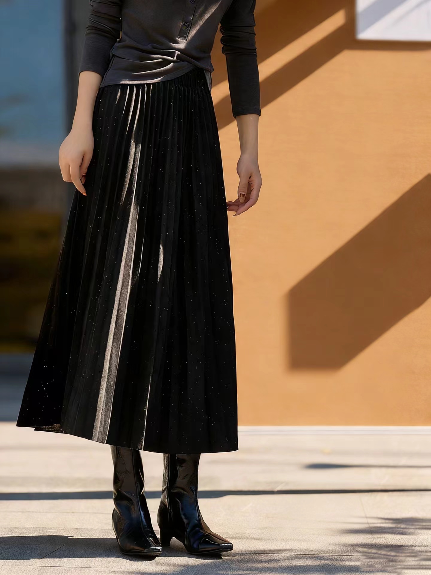 冬季星闪亮片羊毛百褶裙大摆A字半身裙,25FW"星闪"羊毛百褶裙,别具风情的浪漫腔调!大裙摆重工压褶 ,自然散开呈A型裙摆,用料充足,自带垂感,修饰包容多种身材。线条垂顺,视觉不会有膨胀感修饰视觉比例,拉出了大长腿的心机效果!高弹力宽幅松紧腰,确保舒适、轻松穿脱的同时于视觉上精准勾勒出纤细腰线,重塑身材比例!A字大摆不显胯宽,轻松掩盖腿部小缺点,行走间浪漫飘逸,尽显女性柔美!搭配针织or各类大衣外套,打造摩登女性形象,行走间散发行云流水般的气场与优雅~甄选高克重的多纱线混纺细闪针织面料,若隐若现的鎏金工艺,璀璨银粉,通过喷洒工艺附着在面料上折射出层次丰富的鎏金光泽,于低调中彰显品味,仿效三宅手工压皱,由经验丰富的匠人逐寸手工定位、高温高压定型。加入甄选羊毛,适合秋冬季穿带来温暖呵护,柔软透气柔顺挺括,舒适保暖!