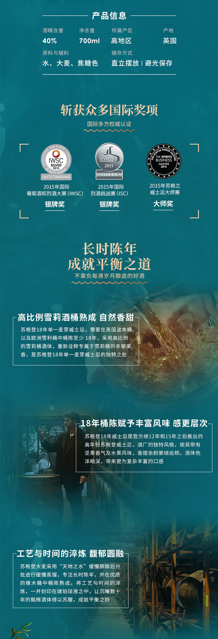 【行货】苏格兰苏格登18年单一麦芽威士忌
