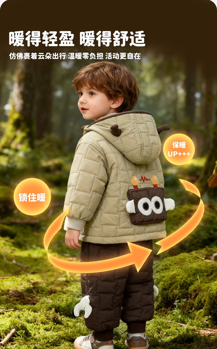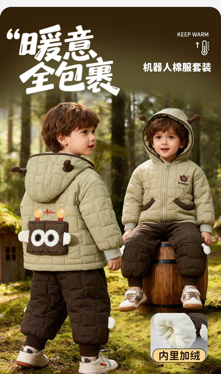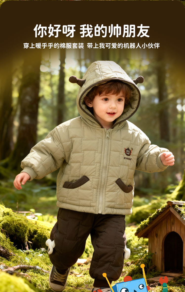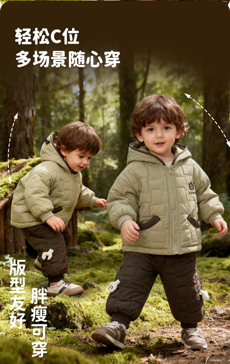 贝贝怡童装儿童连帽夹棉外套2025冬季新款男童可爱棉服宝宝棉袄潮ZB4ET016