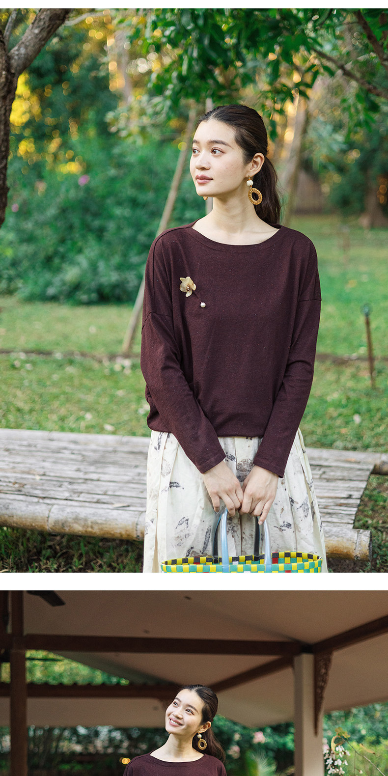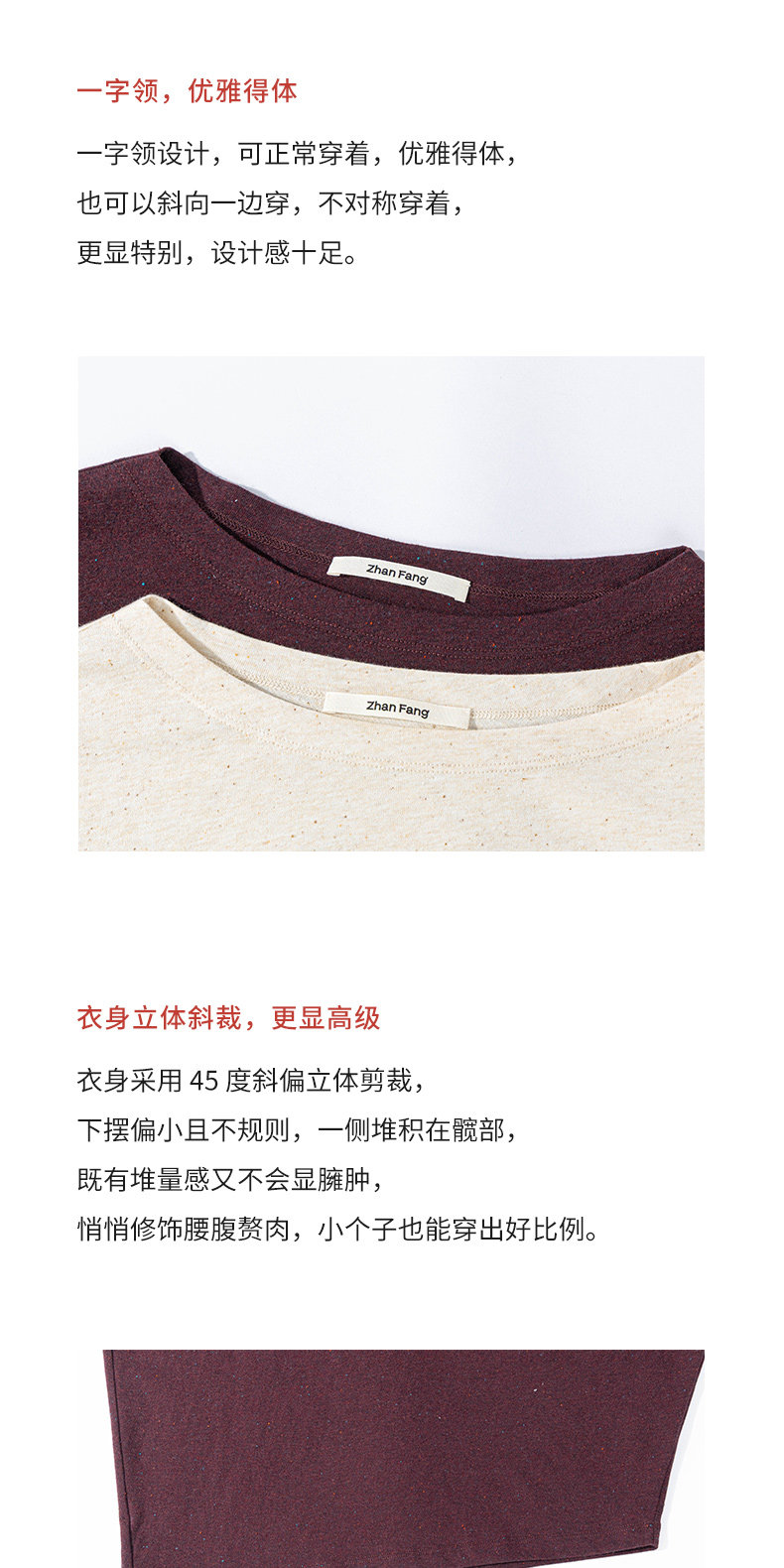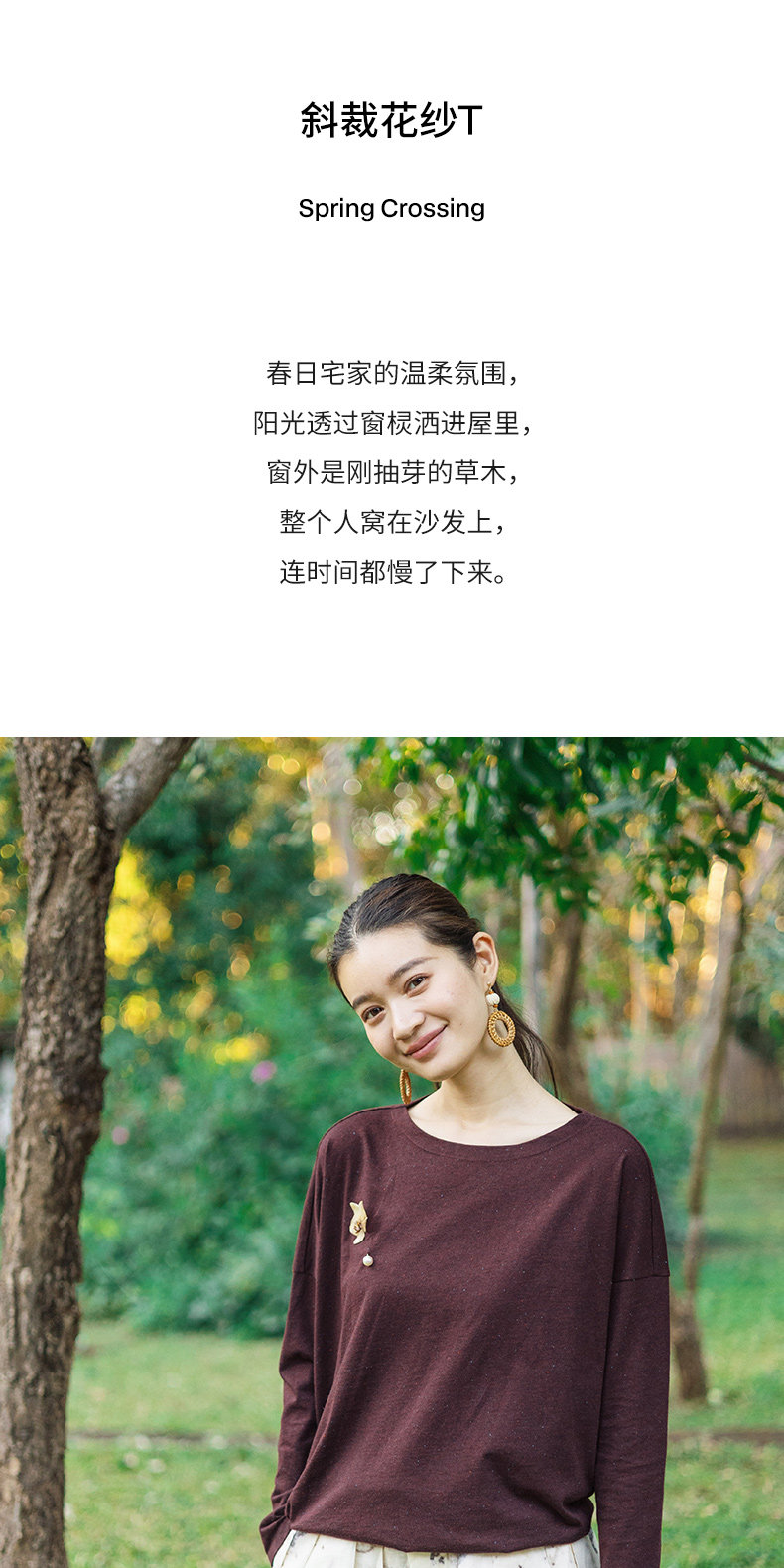 特绽放128朵/斜裁花纱T*桑蚕丝棉花纱一字领不对称下摆长袖T恤女