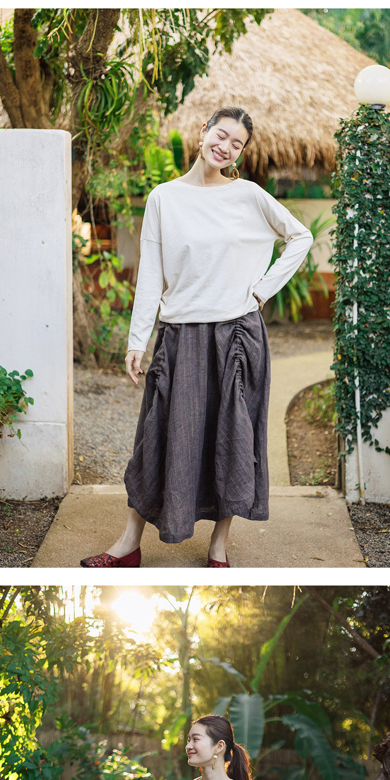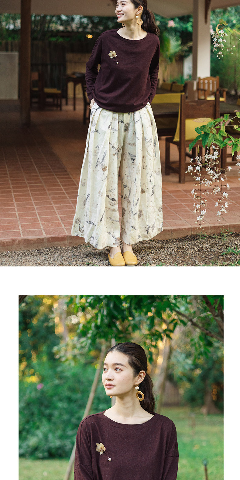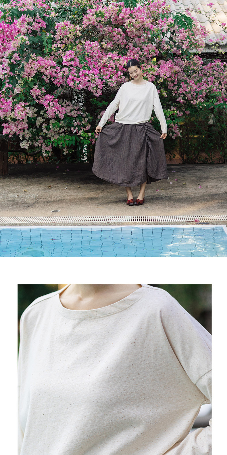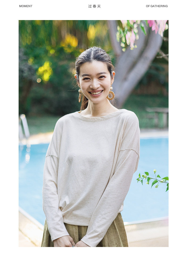 特绽放128朵/斜裁花纱T*桑蚕丝棉花纱一字领不对称下摆长袖T恤女