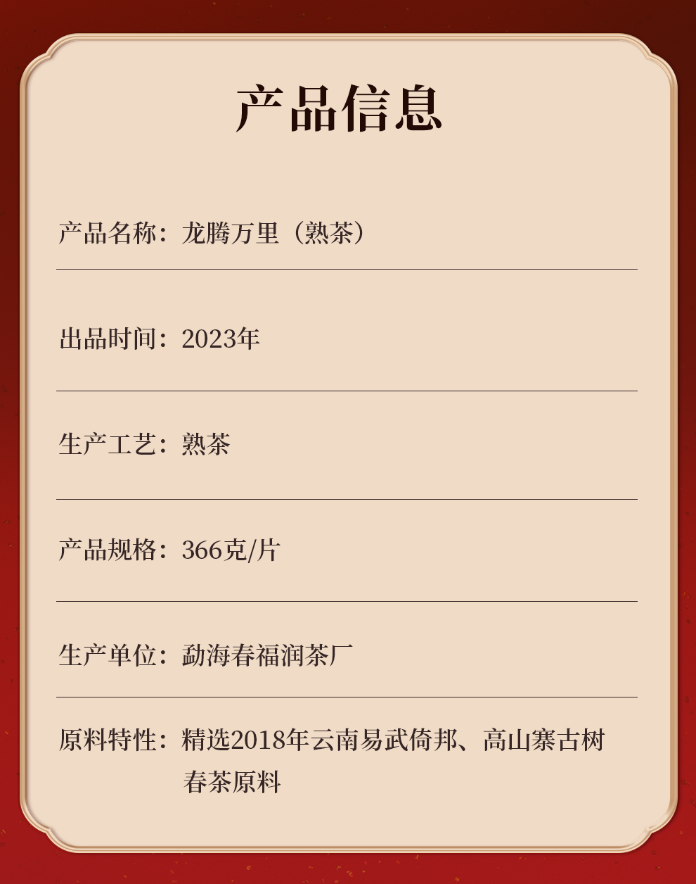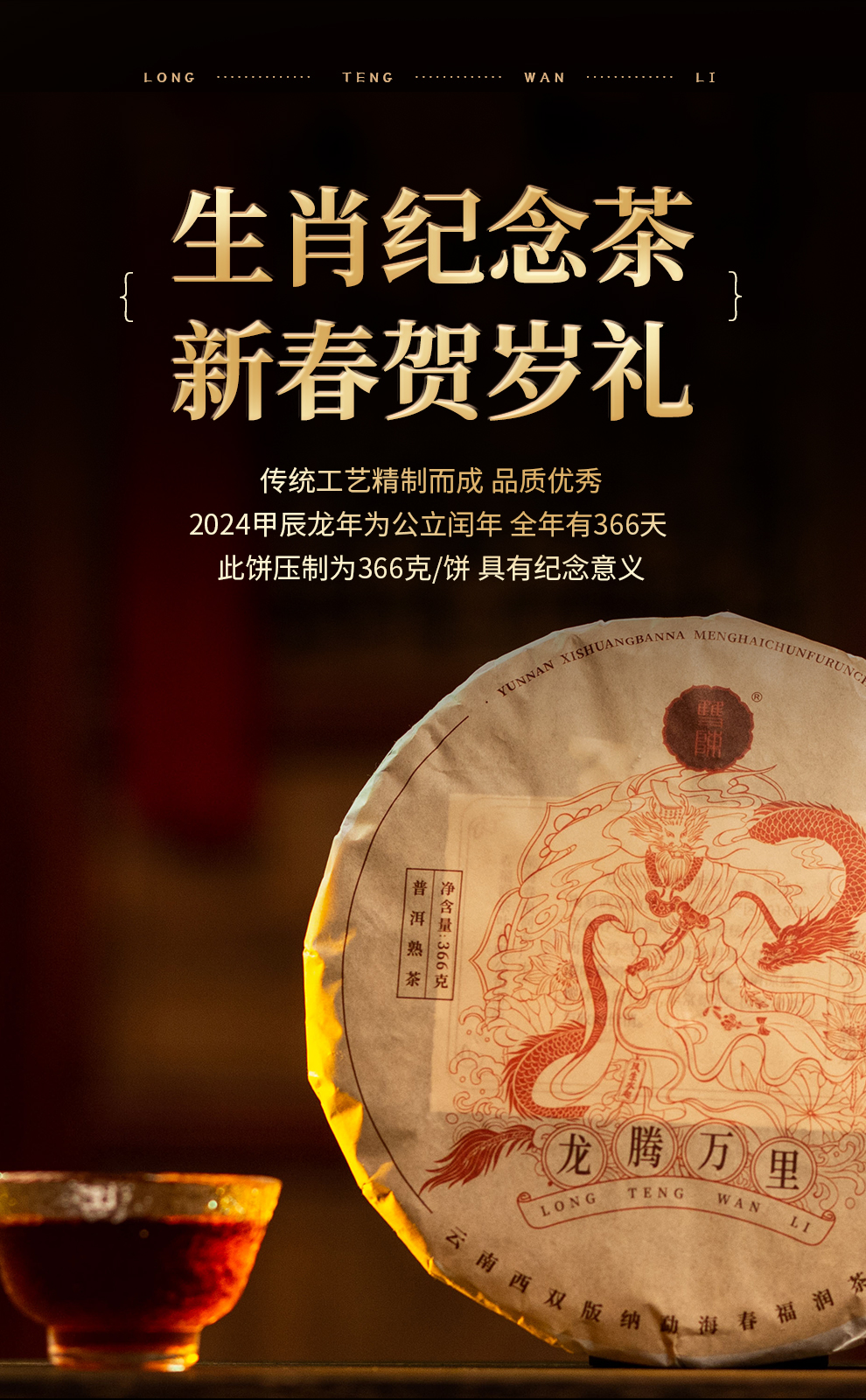 2024年生肖纪念茶龙腾万里普洱熟茶366g饼选料高端药香芬芳正好适饮收藏更佳