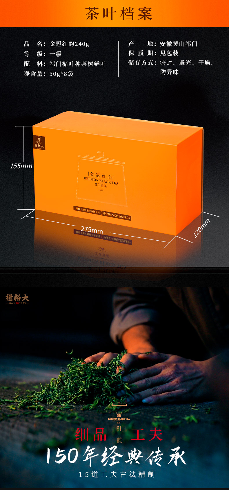 谢裕大祁门红茶 工夫红茶金冠红韵240g礼盒装中秋送礼推荐