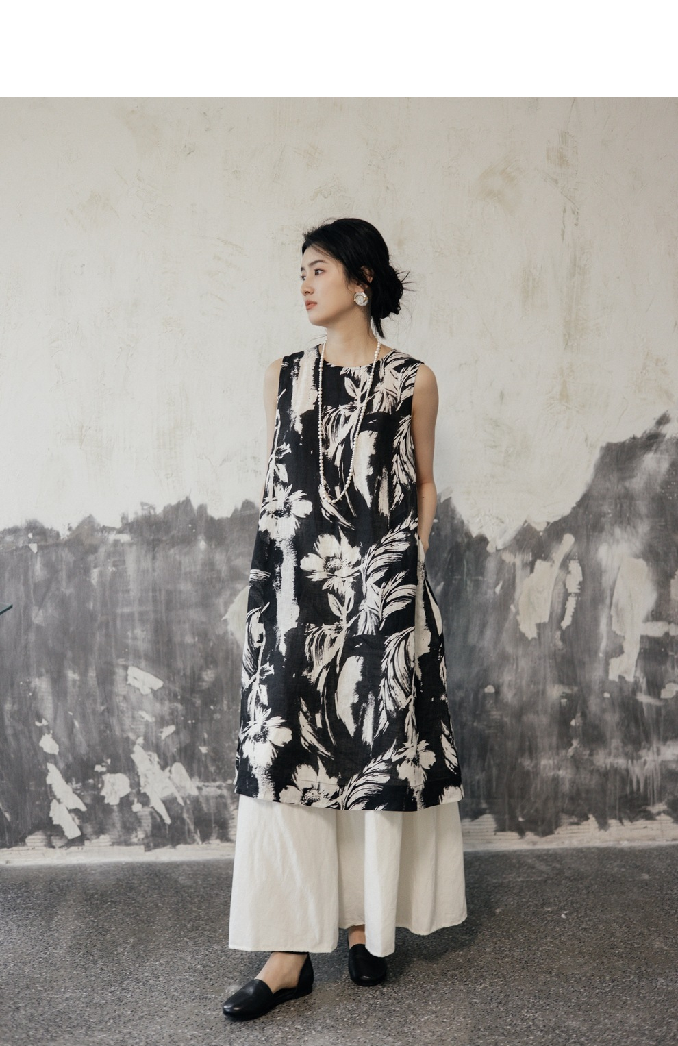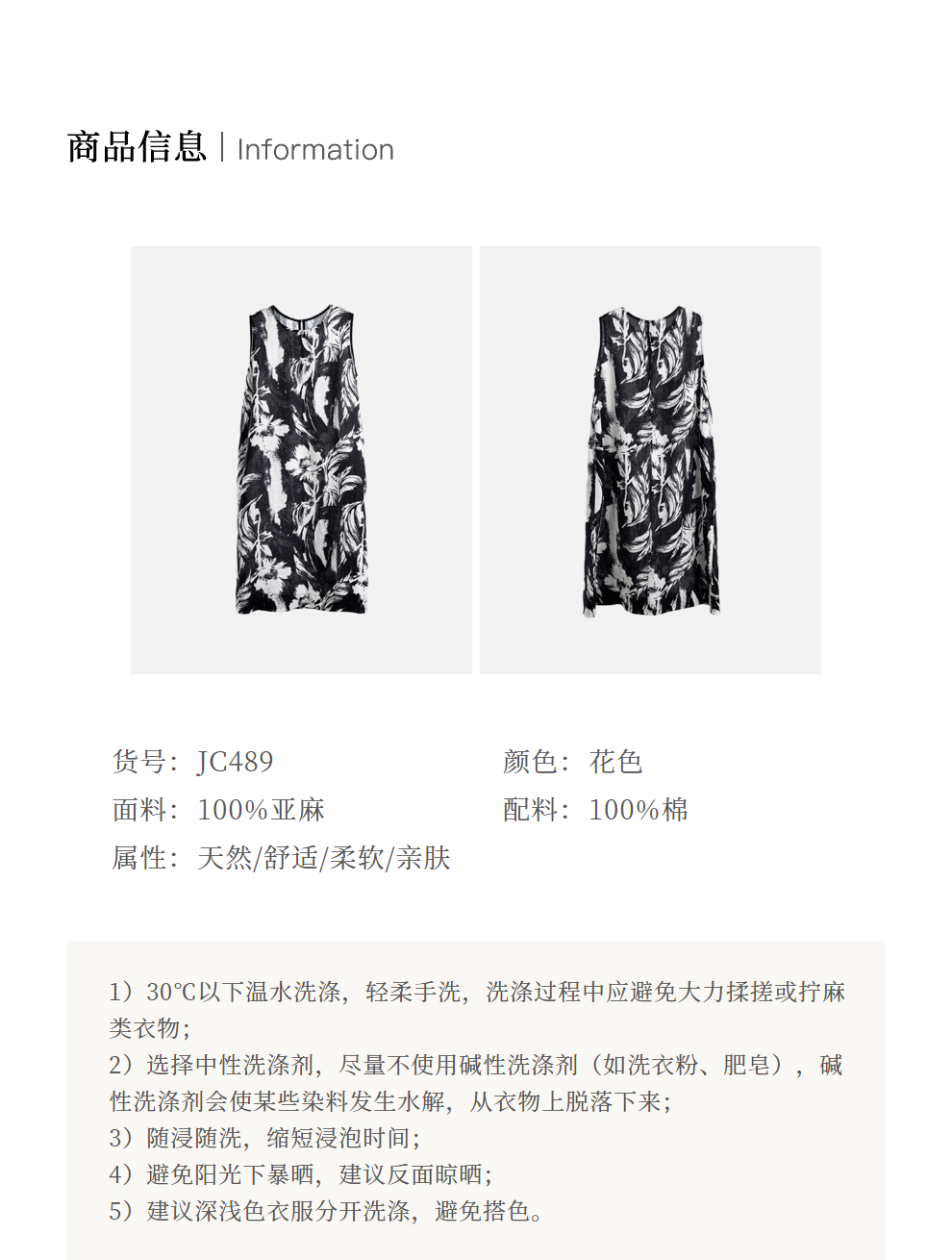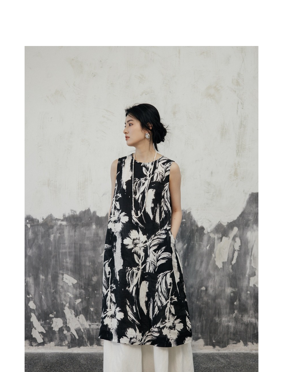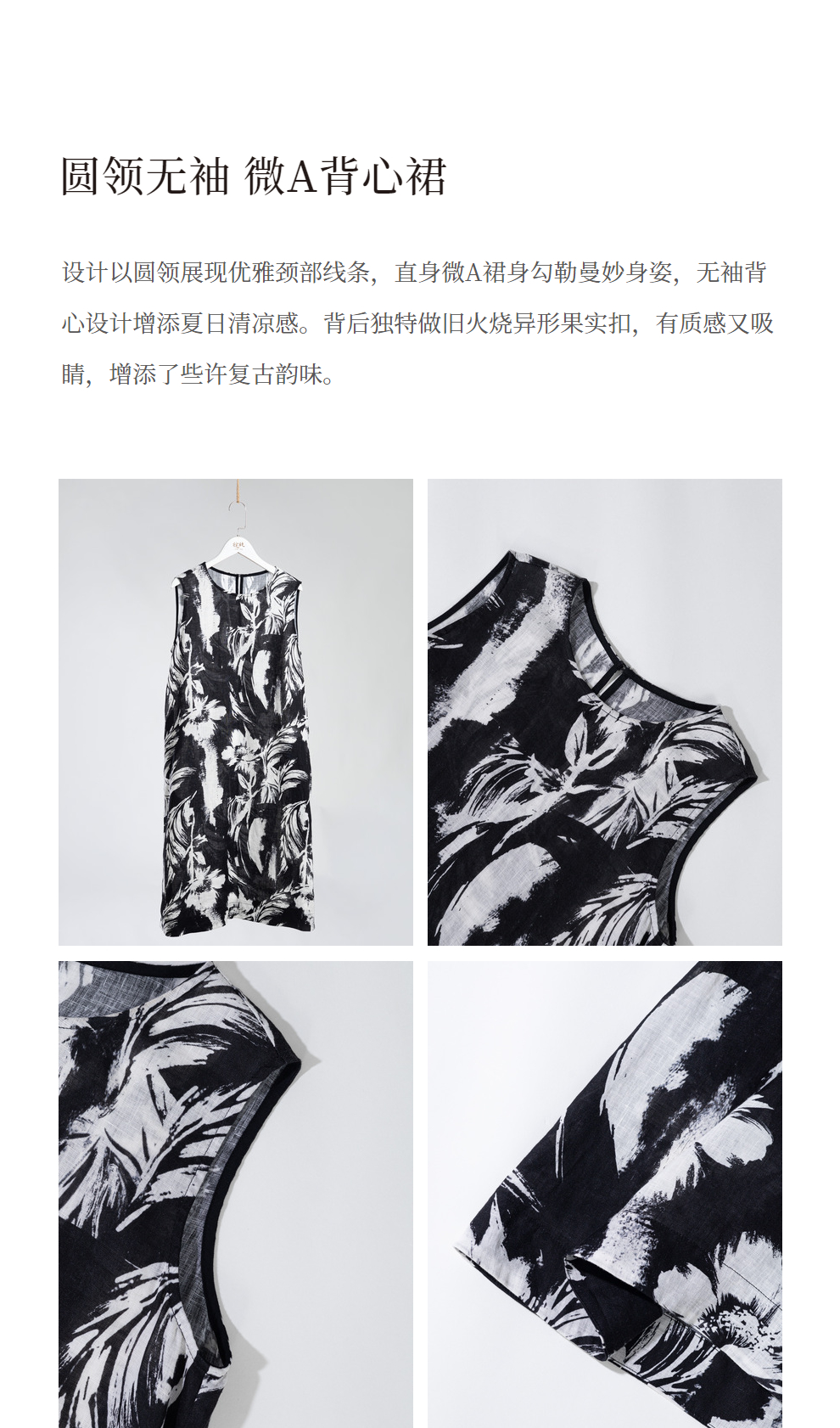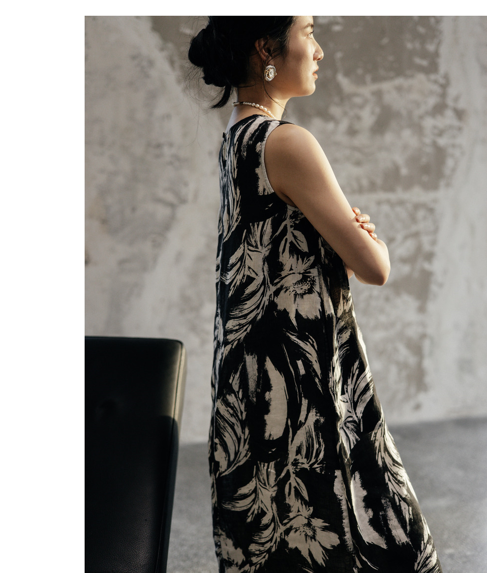 * 绽放489朵【黑白灰系列·女主角】宽松微A显瘦亚麻圆领无袖背心裙