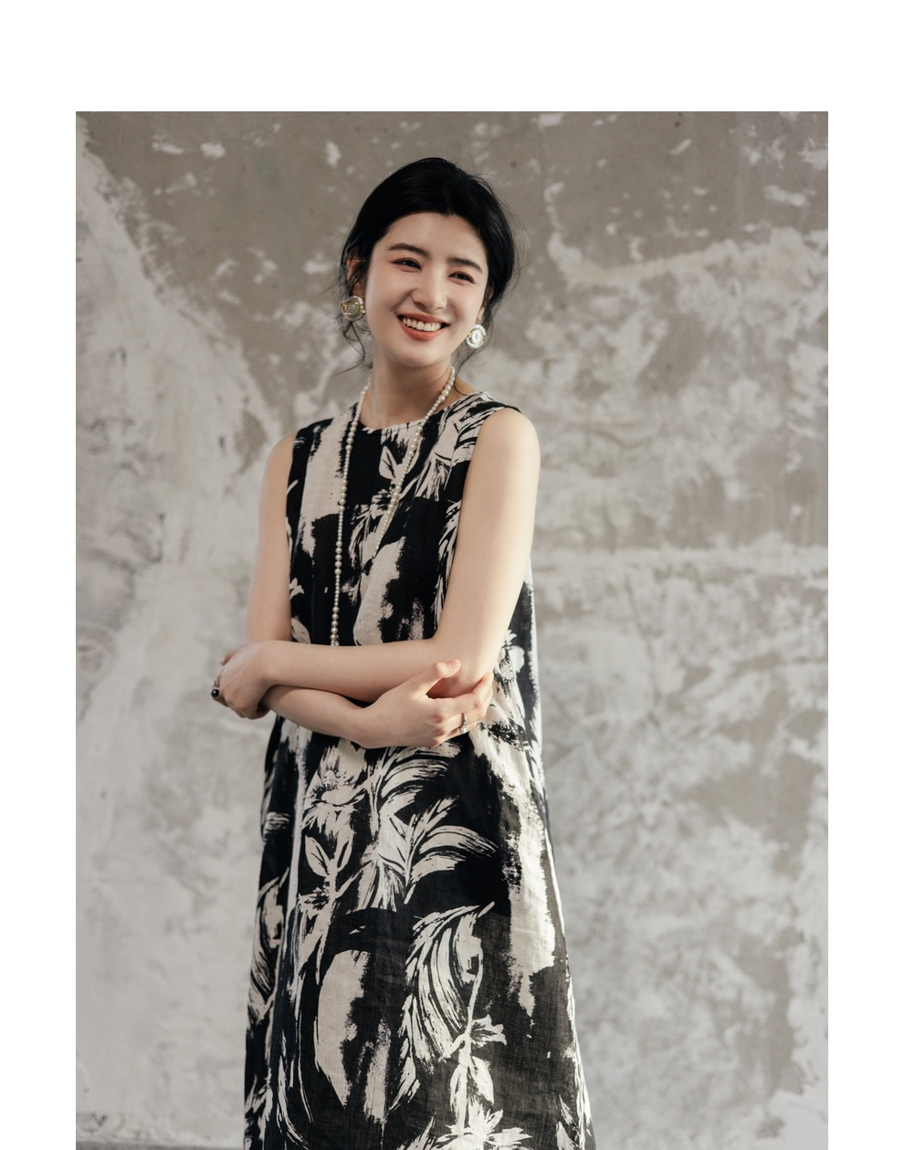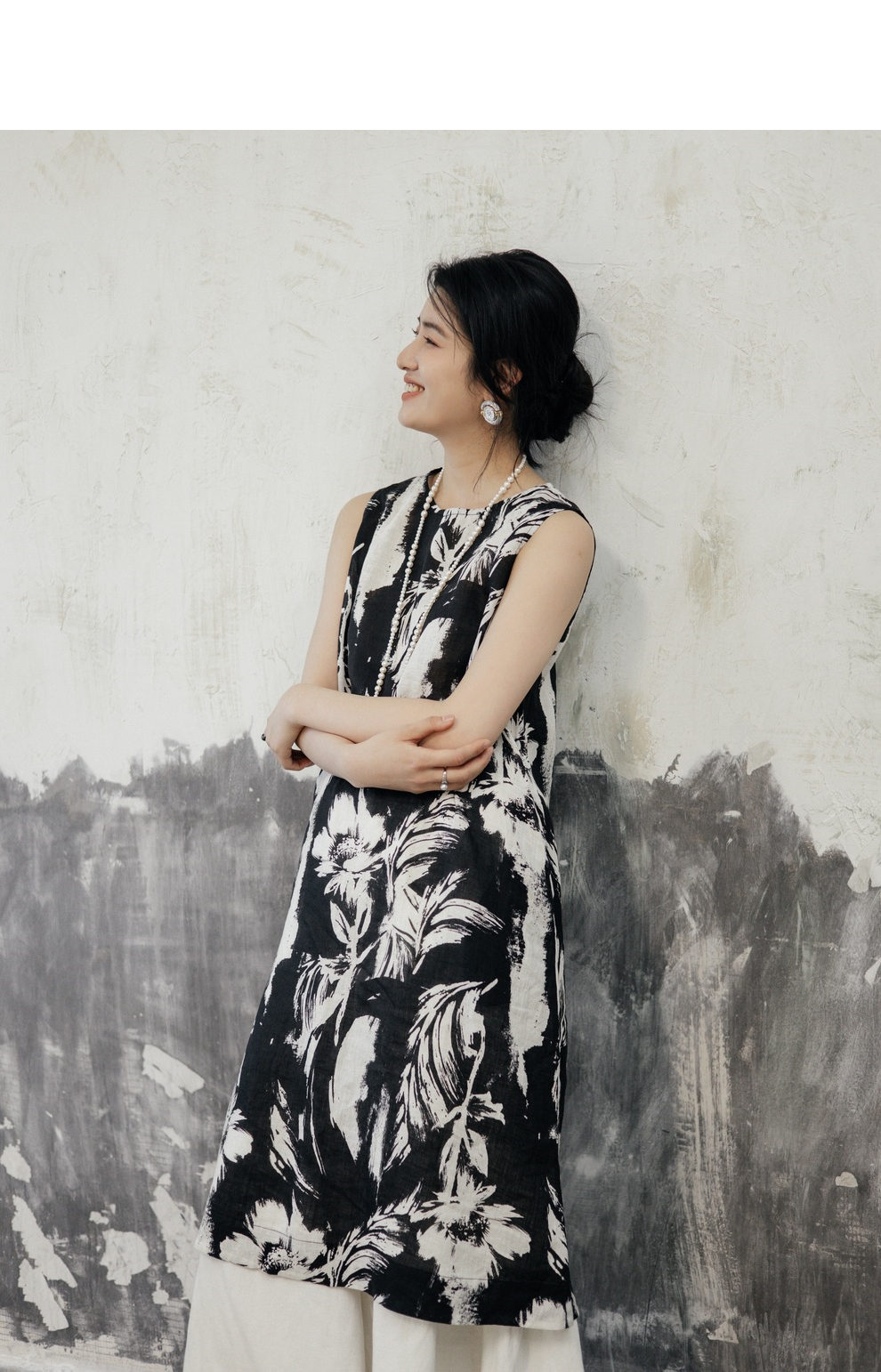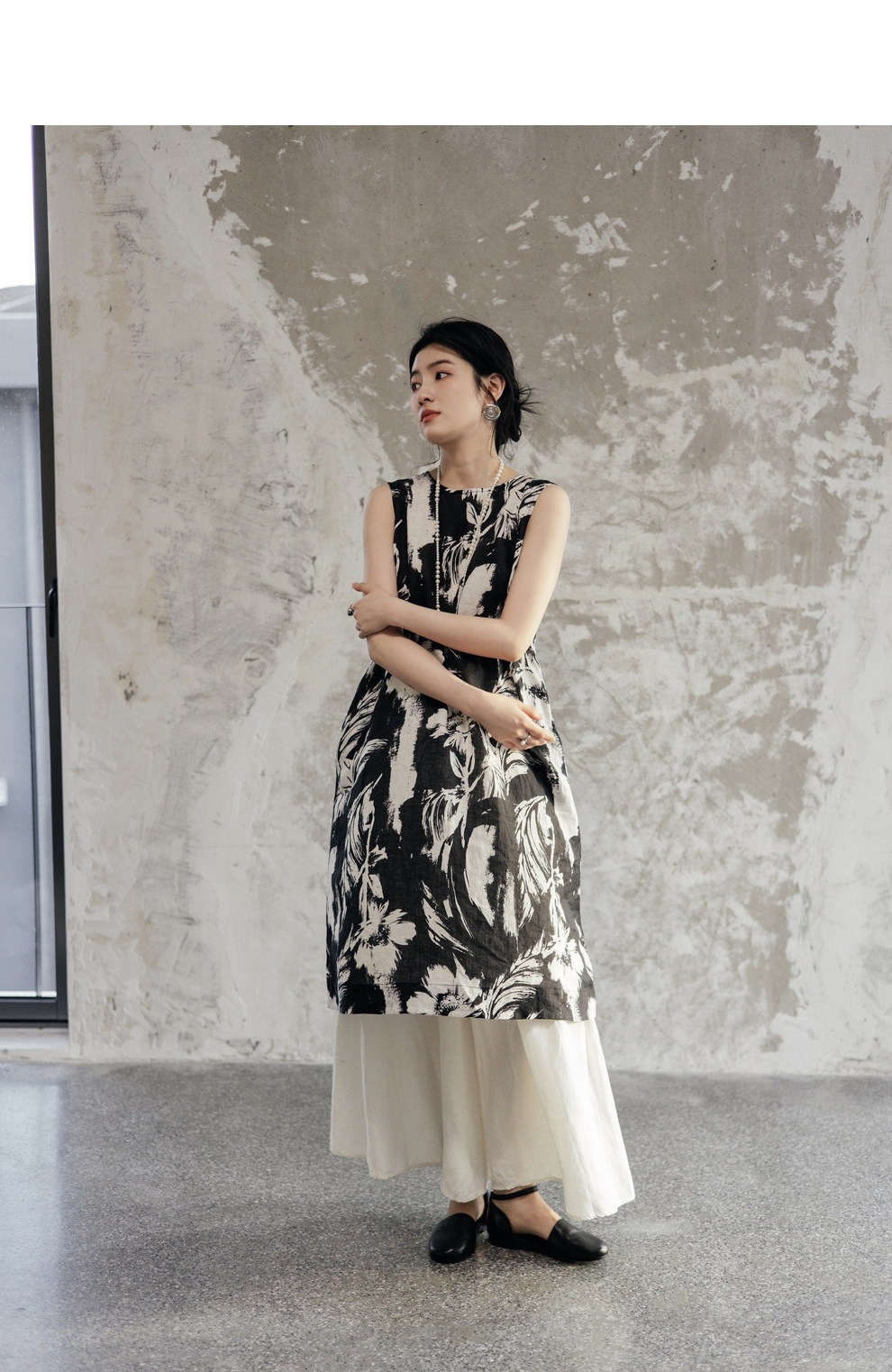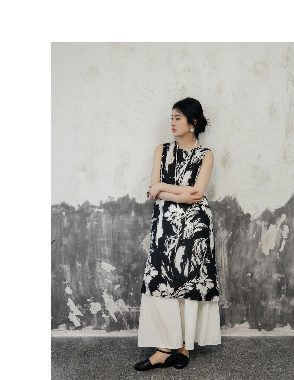 * 绽放489朵【黑白灰系列·女主角】宽松微A显瘦亚麻圆领无袖背心裙
