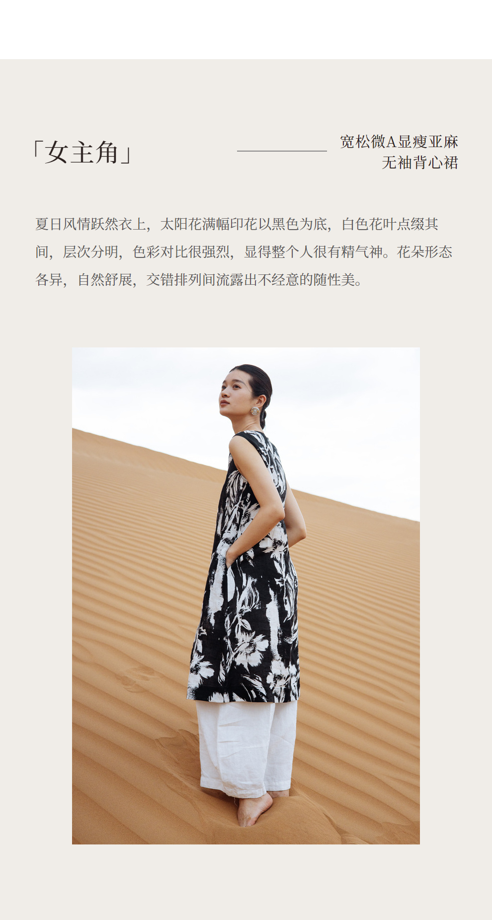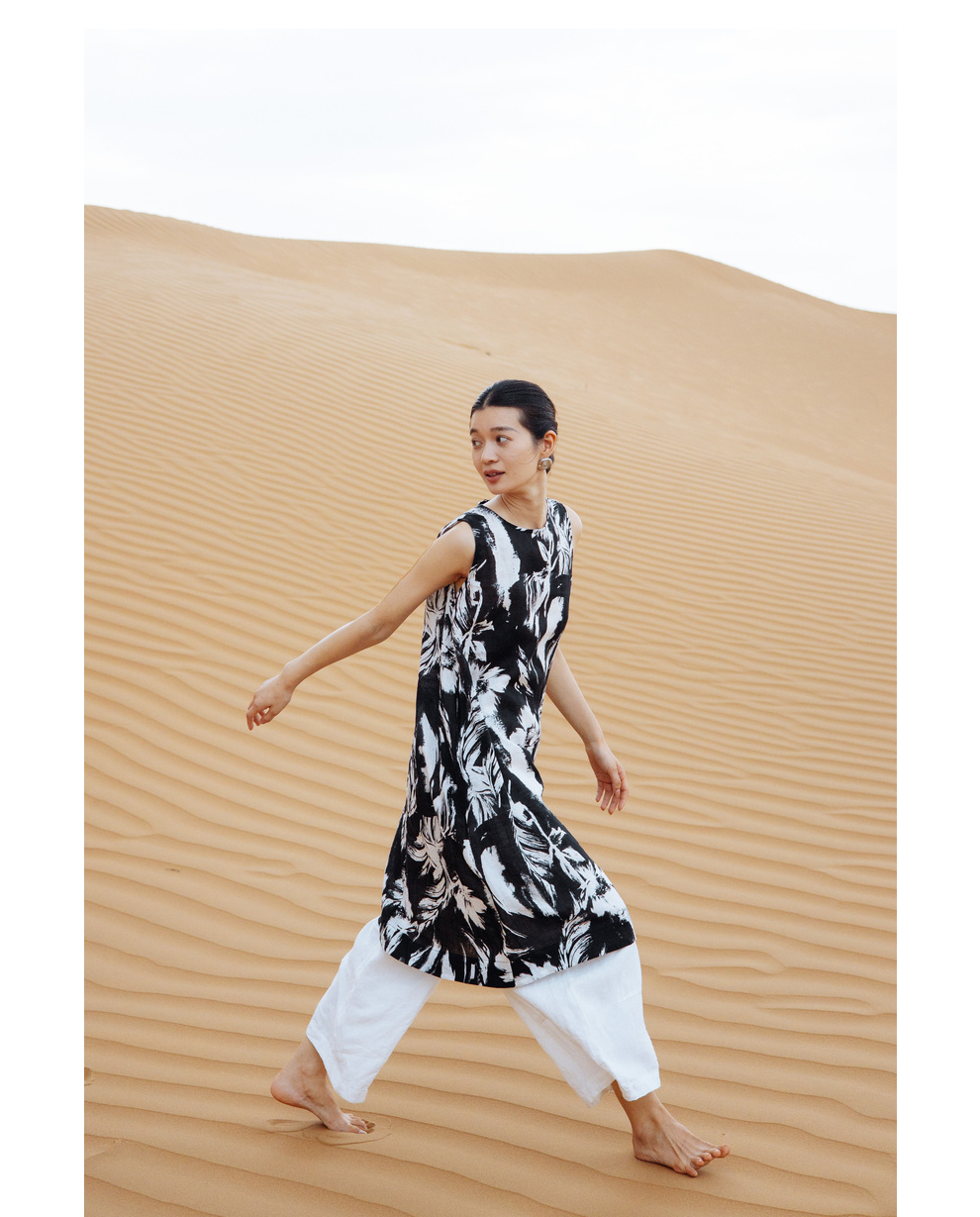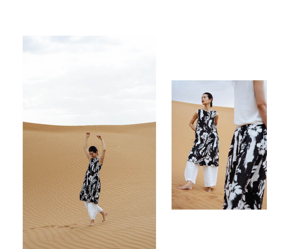 以天然亚麻为载体,融合热烈色彩与自在剪裁为身在城市、心怀远方的女性提供兼具美学与舒适的旅行着装