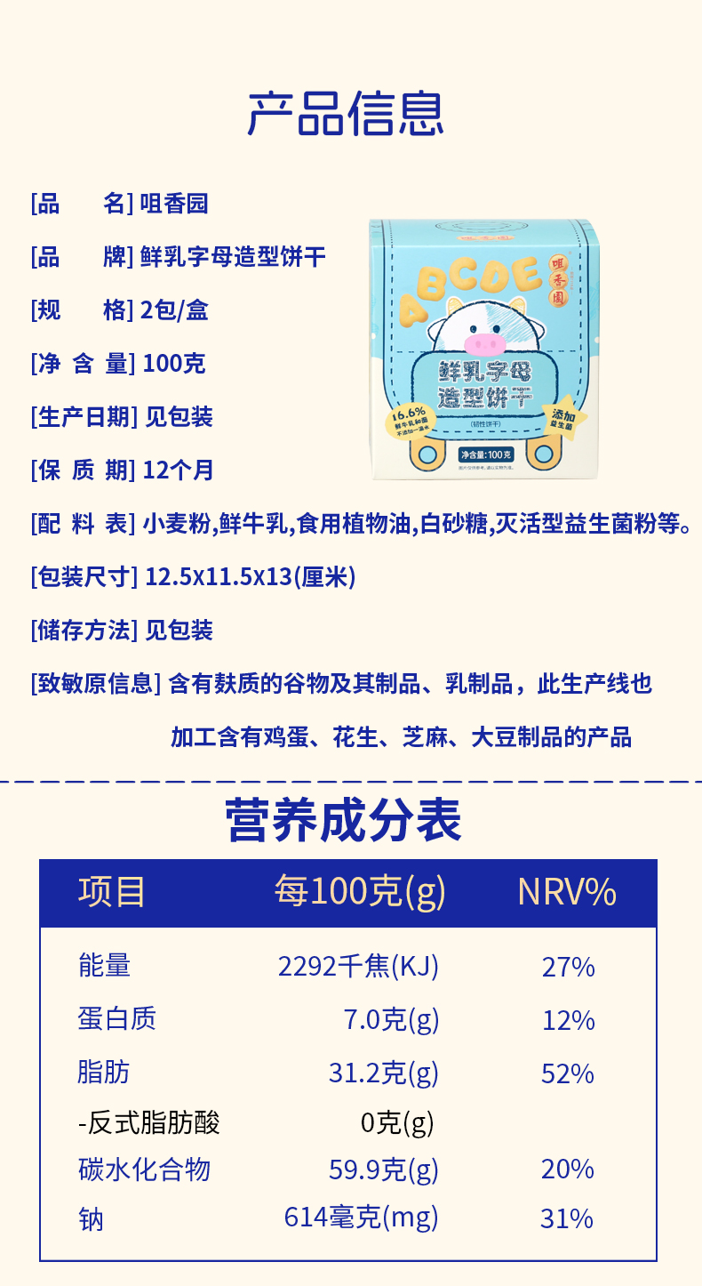 【拍1发2】【咀香园鲜乳字母造型韧性饼干100g】儿童趣味休闲零美食嘴馋小吃