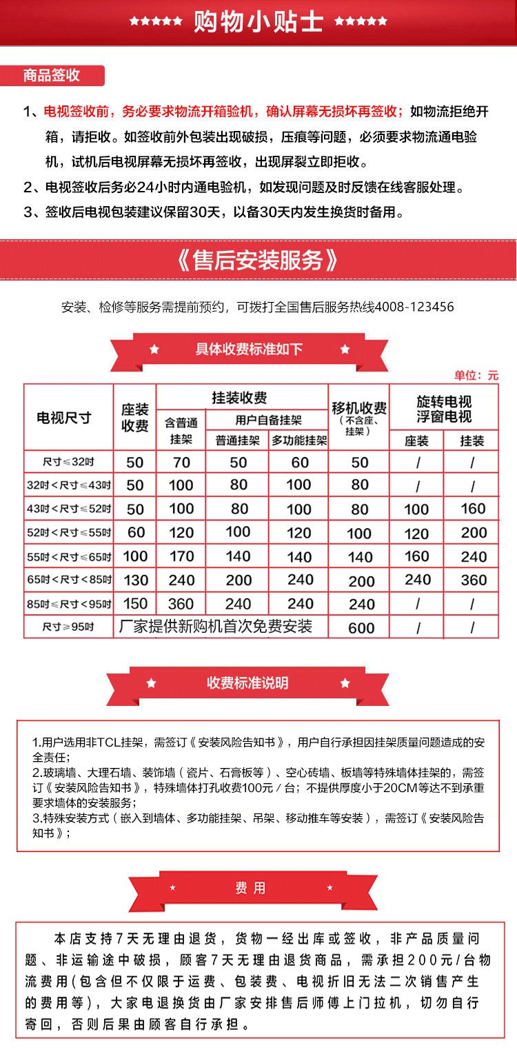 | 注: ①未开通互动或宽带的用户,需另加EOC终端100元/只; ②若原为标清机顶盒用户需先换机,换机价格为240元/台含一台4K机顶盒、一只EOC终端,不含互动节目包; ③若为新装用户,需在换机基础上另加智能卡55元/张; ④若为宽带新装用户,需另收108元安装调试费; ⑤如120M宽带需升级的,可拨打客服热线96371或者直接在订单中留言,我们将尽快与您取得联系; ⑥若原为高清互动用户,升级4K机顶盒为180元/台,不含互动节目包; ⑦以上优惠套餐中,宽带、华数互动、4K互动任选其一; ⑧以上优惠数字电视用户专享且含数字电视基本收视维护费; ⑨以上套餐中4K节目为4K机顶盒专享,高清节目在高清或4K机顶盒上都可收看; ⑩以上优惠合约期内不得报停、取消; 如有疑问,请拨打客服热线96371。 | |