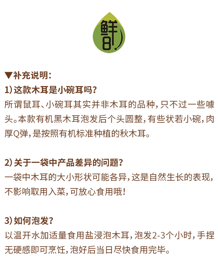 鲜8有机黑木耳 120g*2袋包邮装