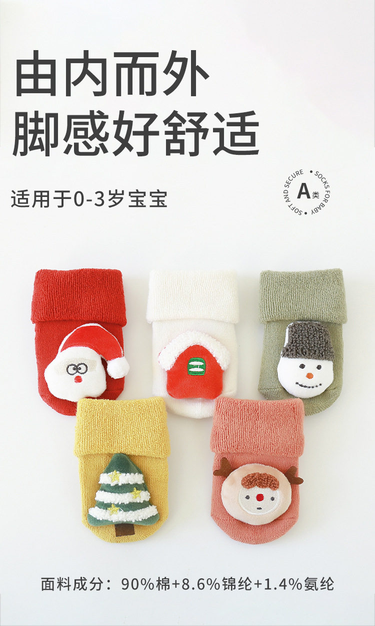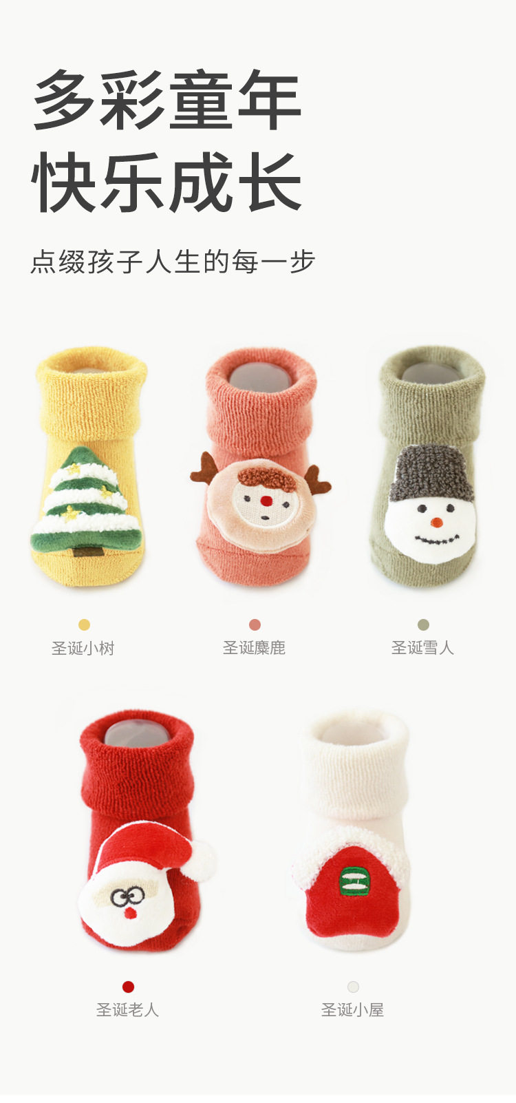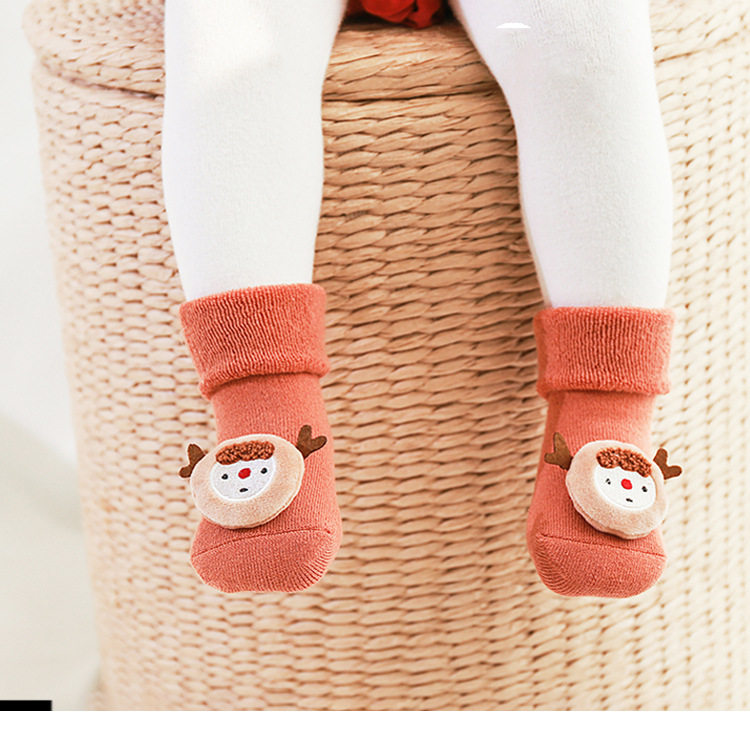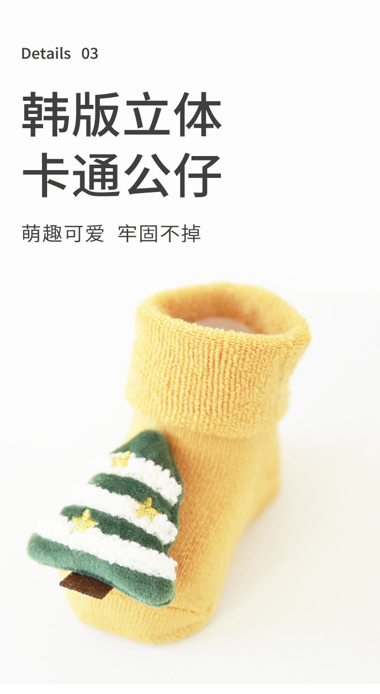 冬季新款毛圈加厚宝宝袜子点胶防滑婴儿地板袜儿童圣诞卡通公仔袜